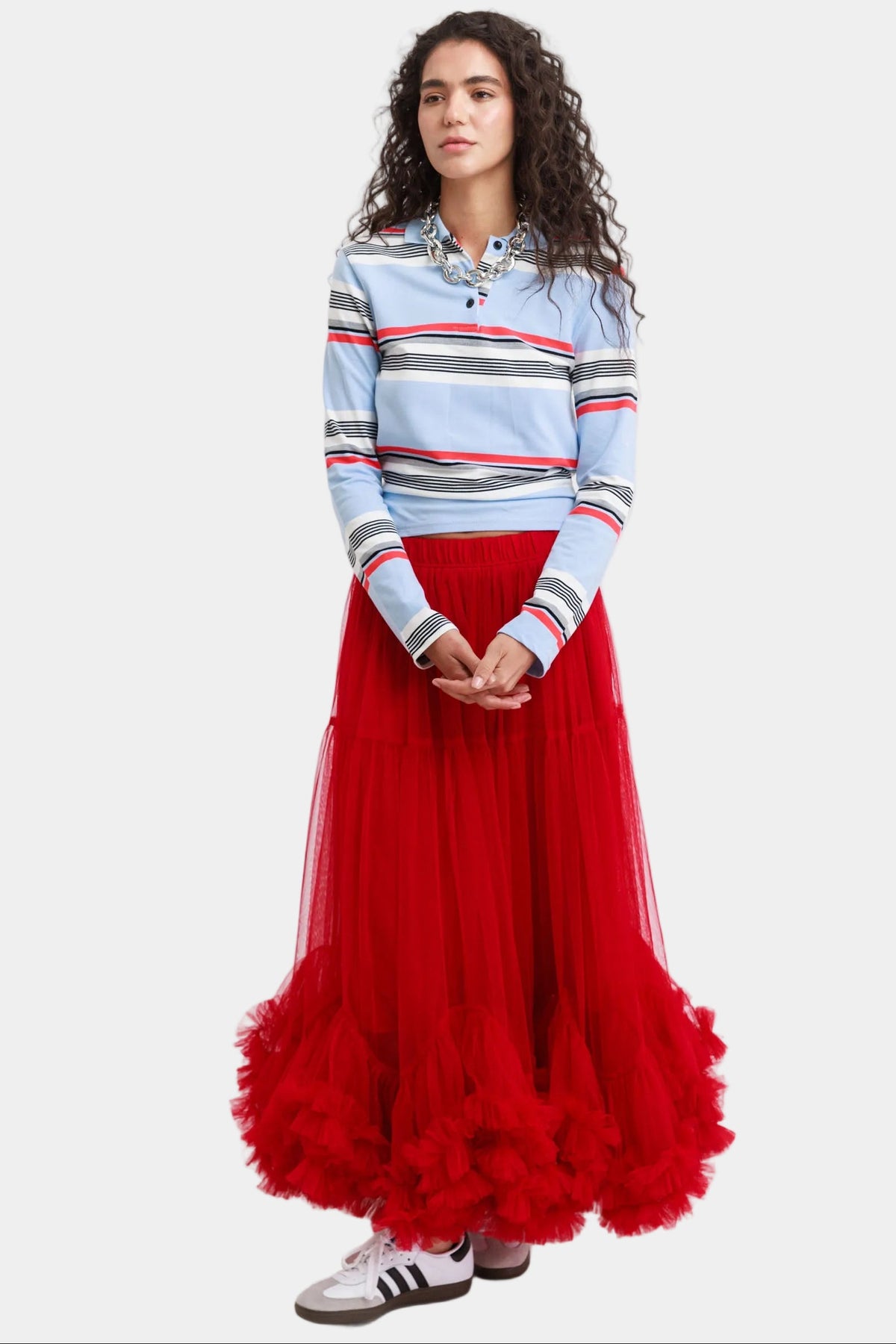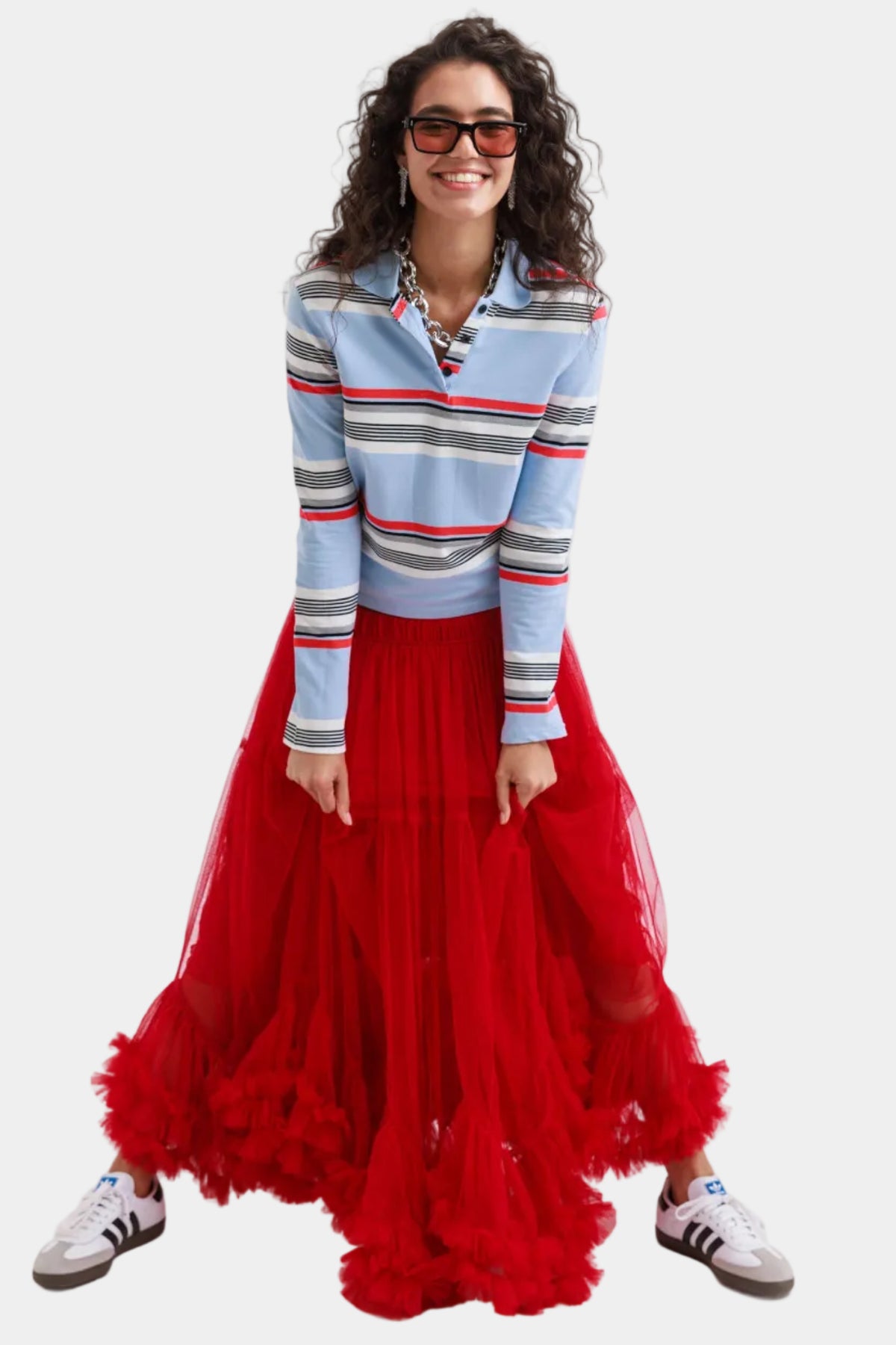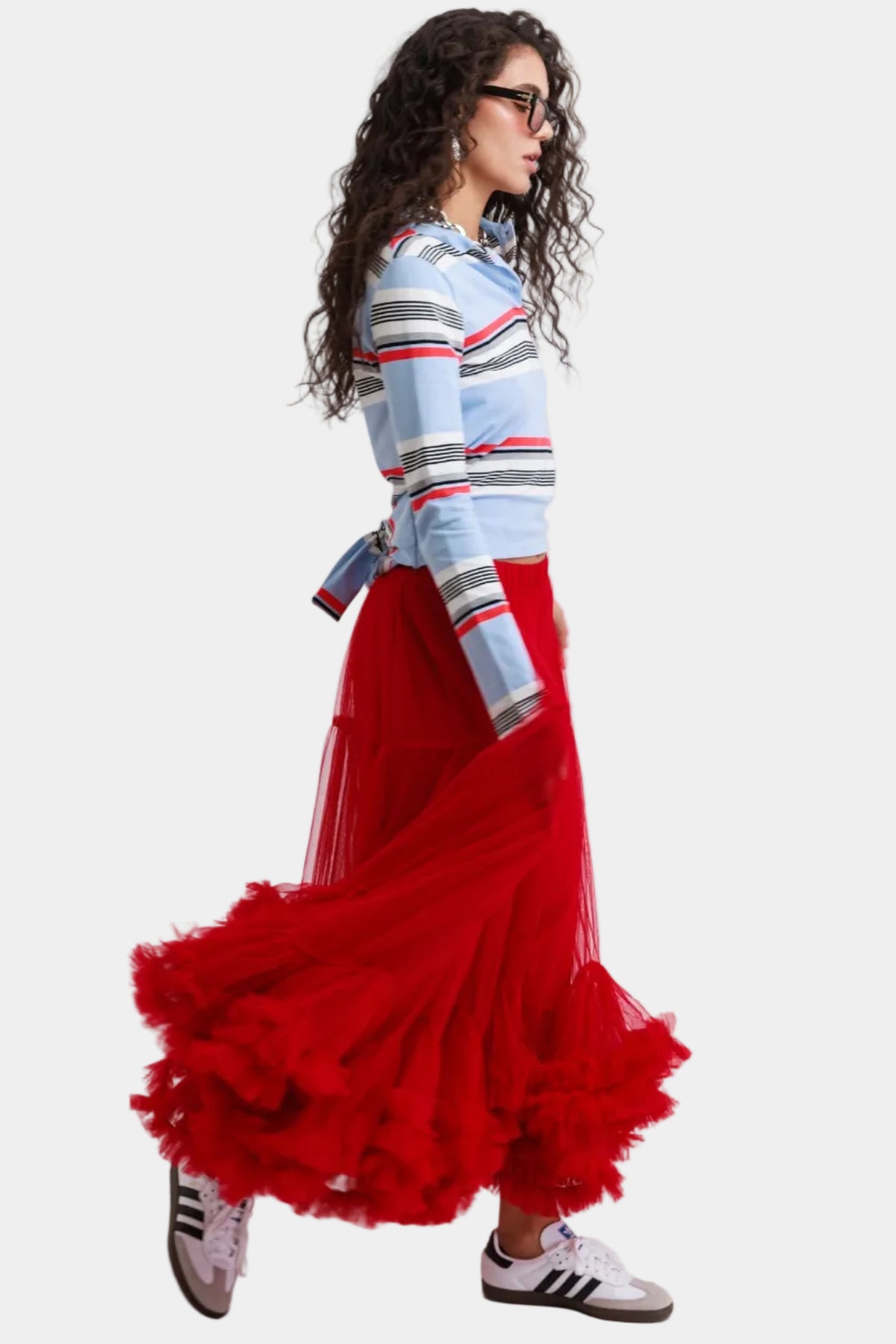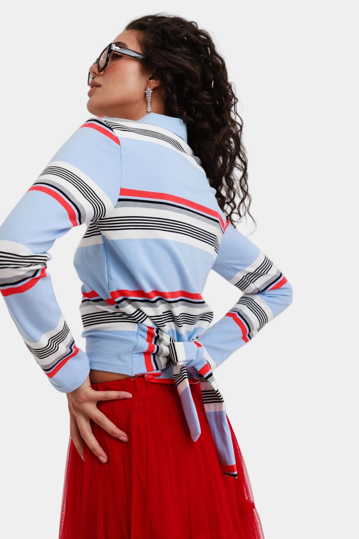 חולצה ארוכה בדוגמת פסים עם צווארון וכפתורים קדמיים, שרוולים ארוכים וקשירת מותן להתאמה אישית ולמראה מחמיא ונקי.