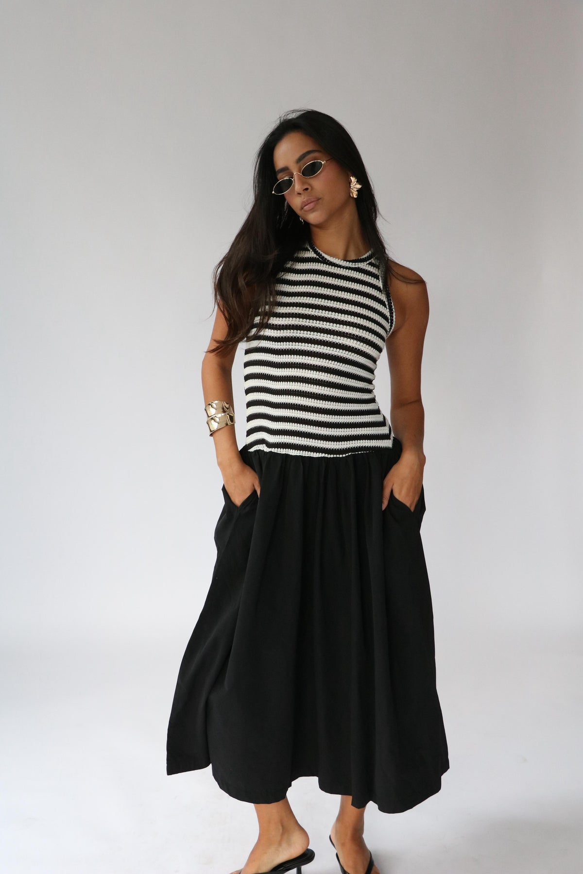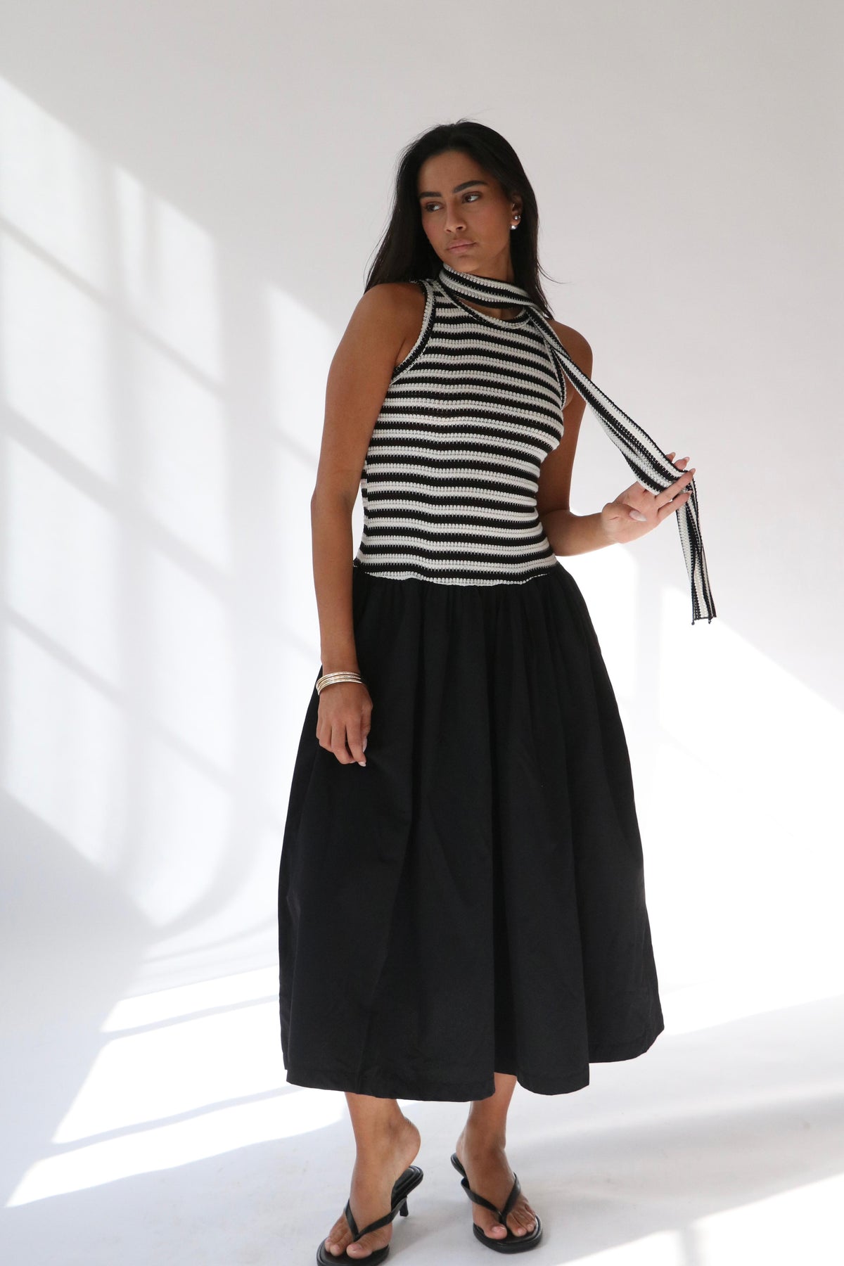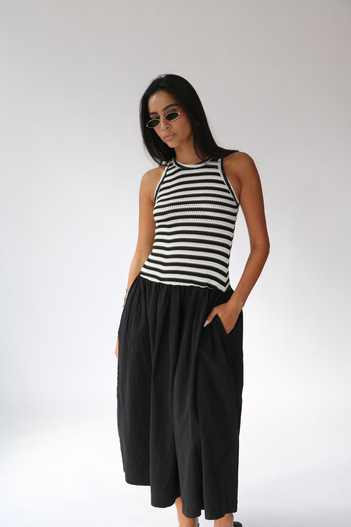 שמלת קריסטלי -פסים שחור