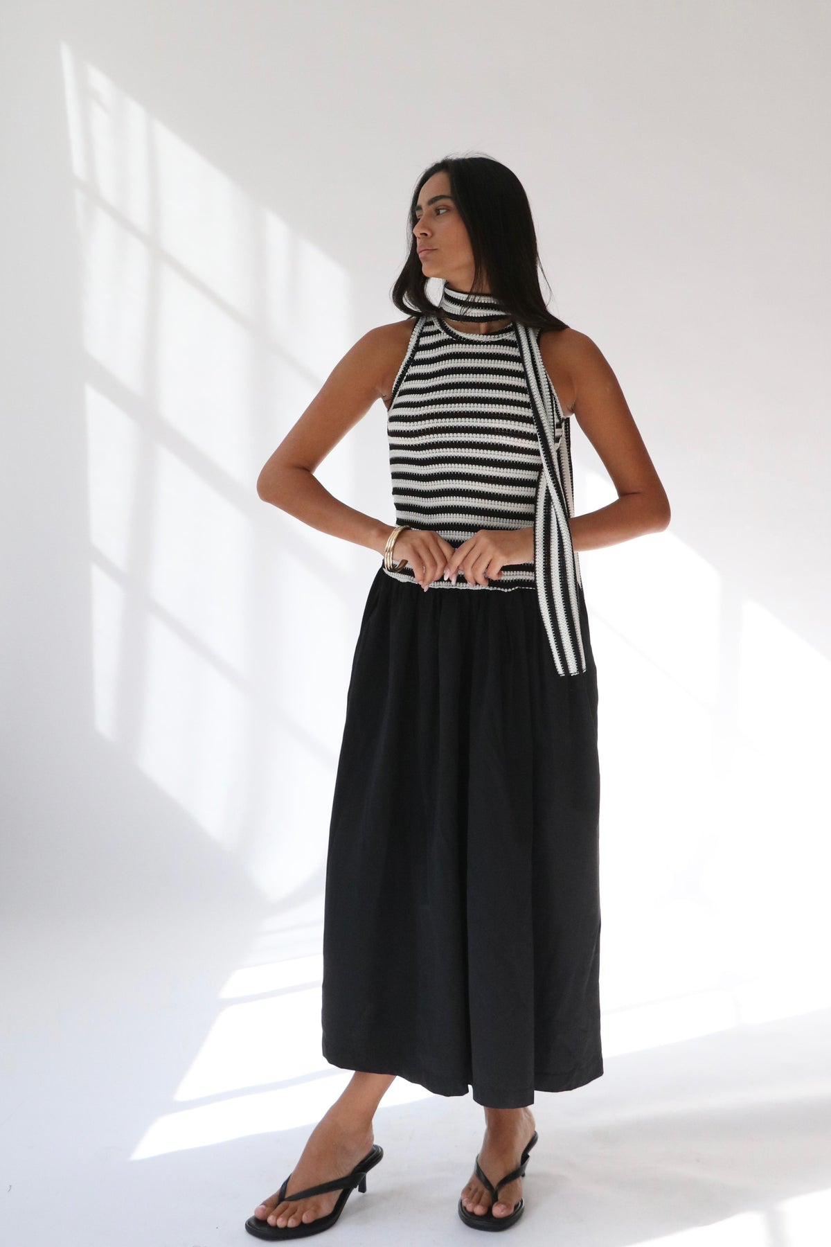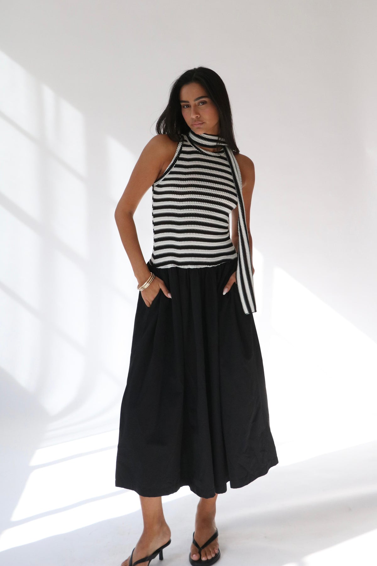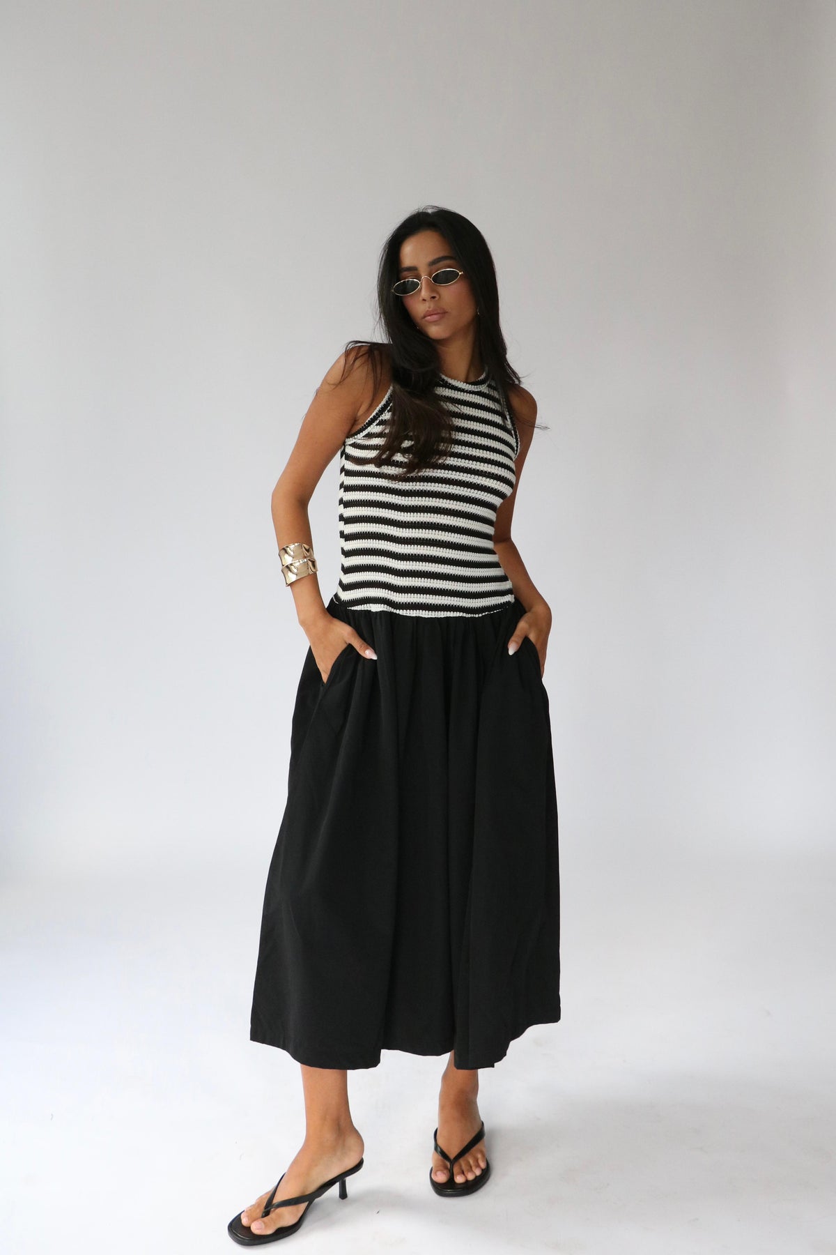 שמלת קריסטלי -פסים שחור
