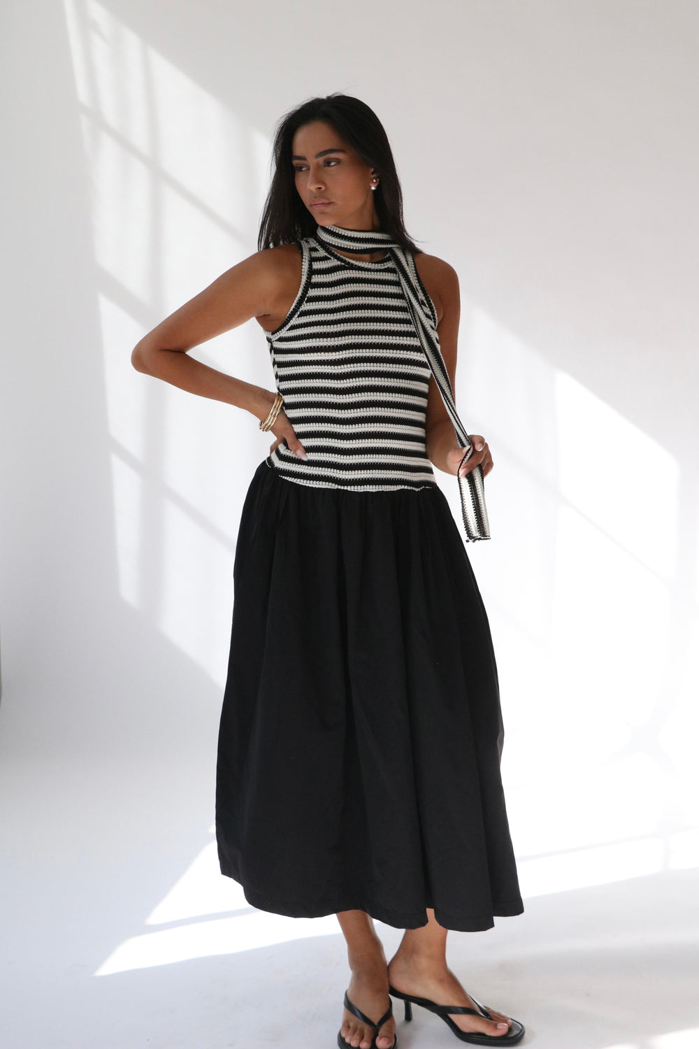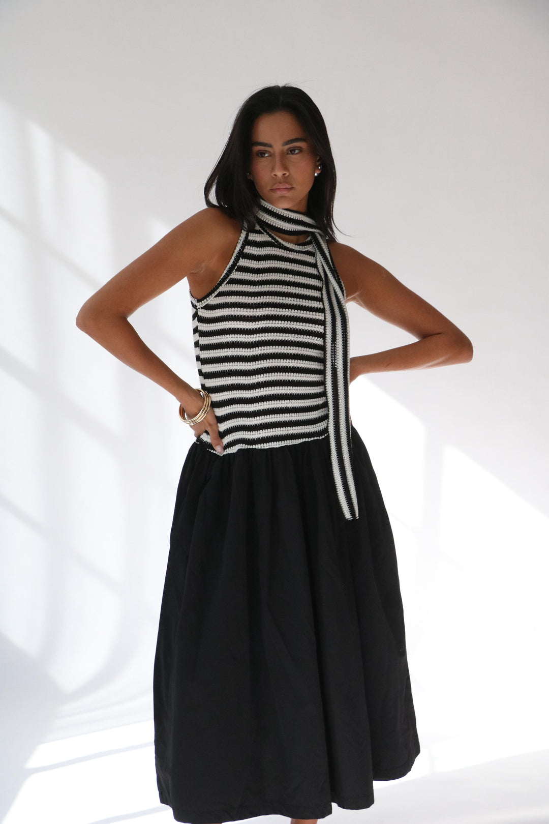 שמלת קריסטלי -פסים שחור