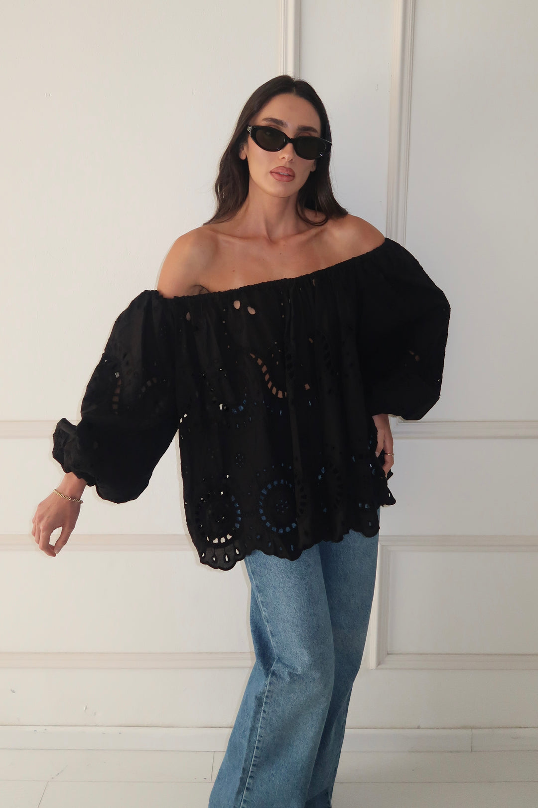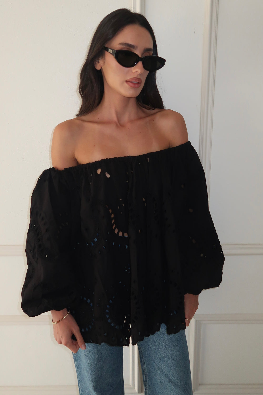 חולצת תחרה מוניק - שחור