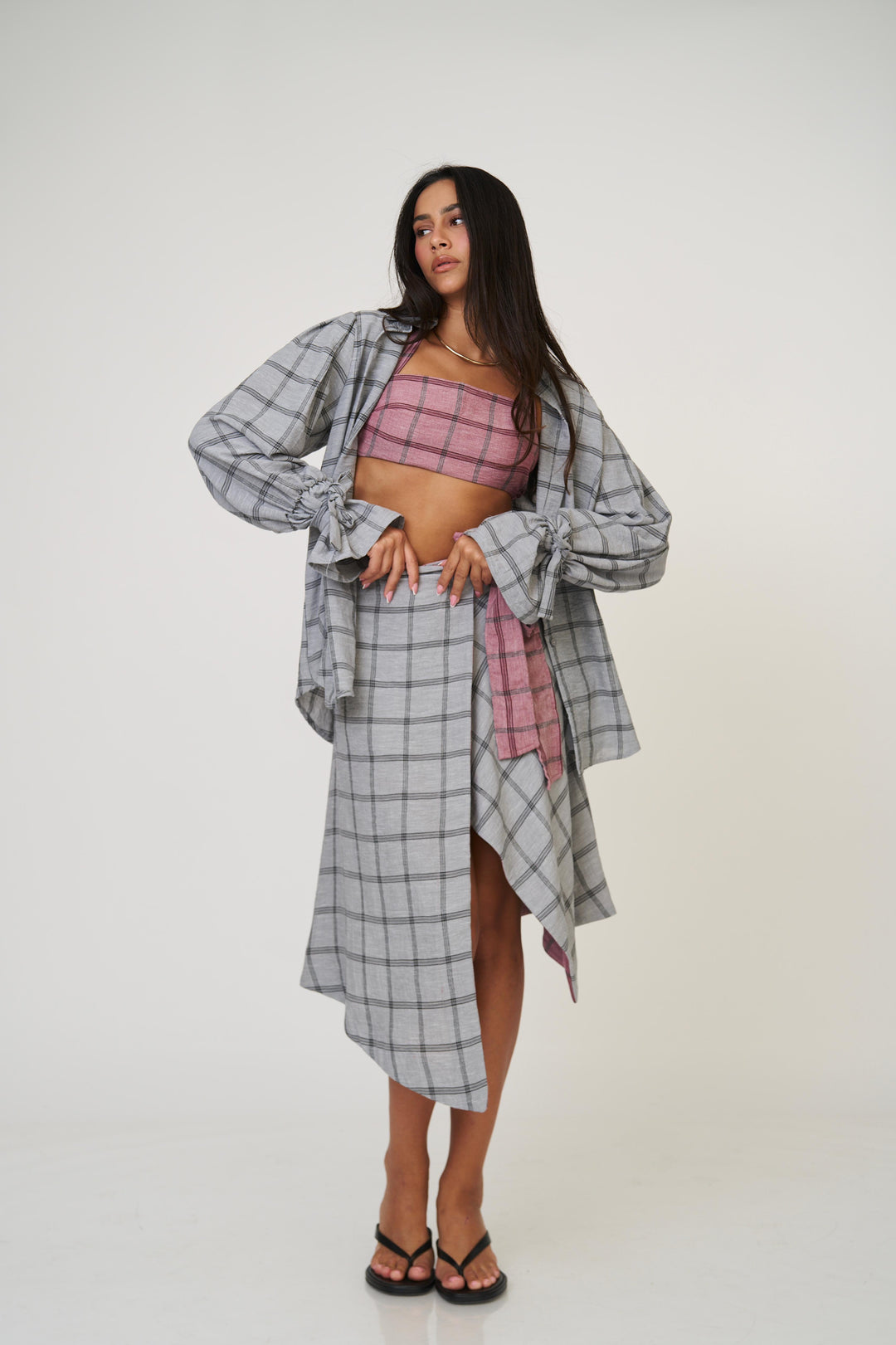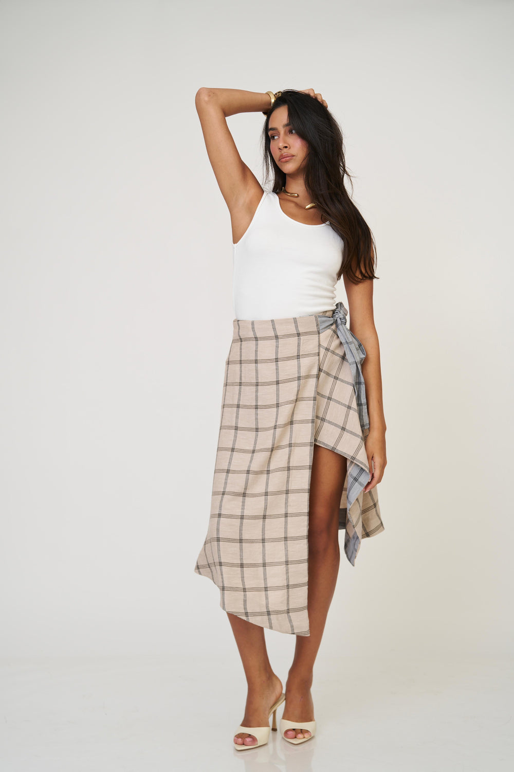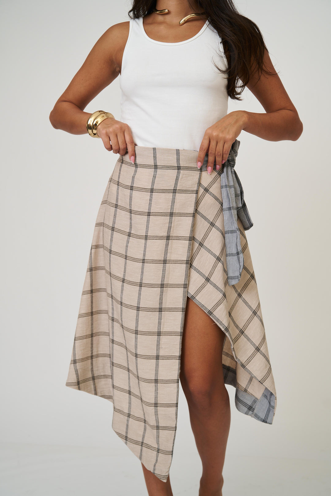 חצאית אנה משבצות - בז