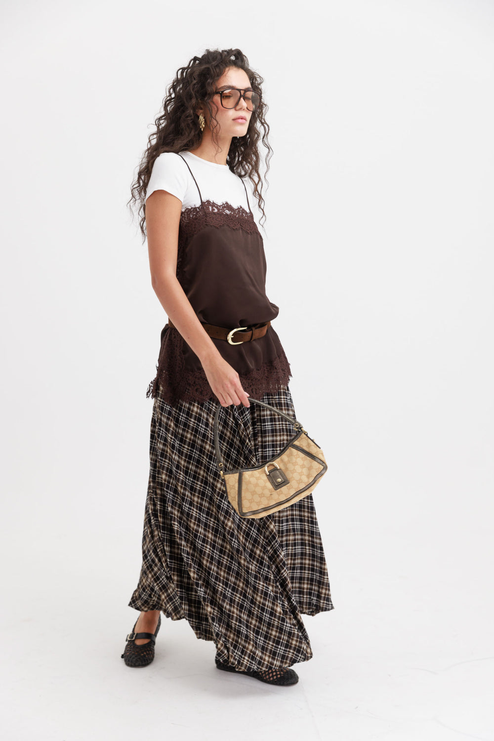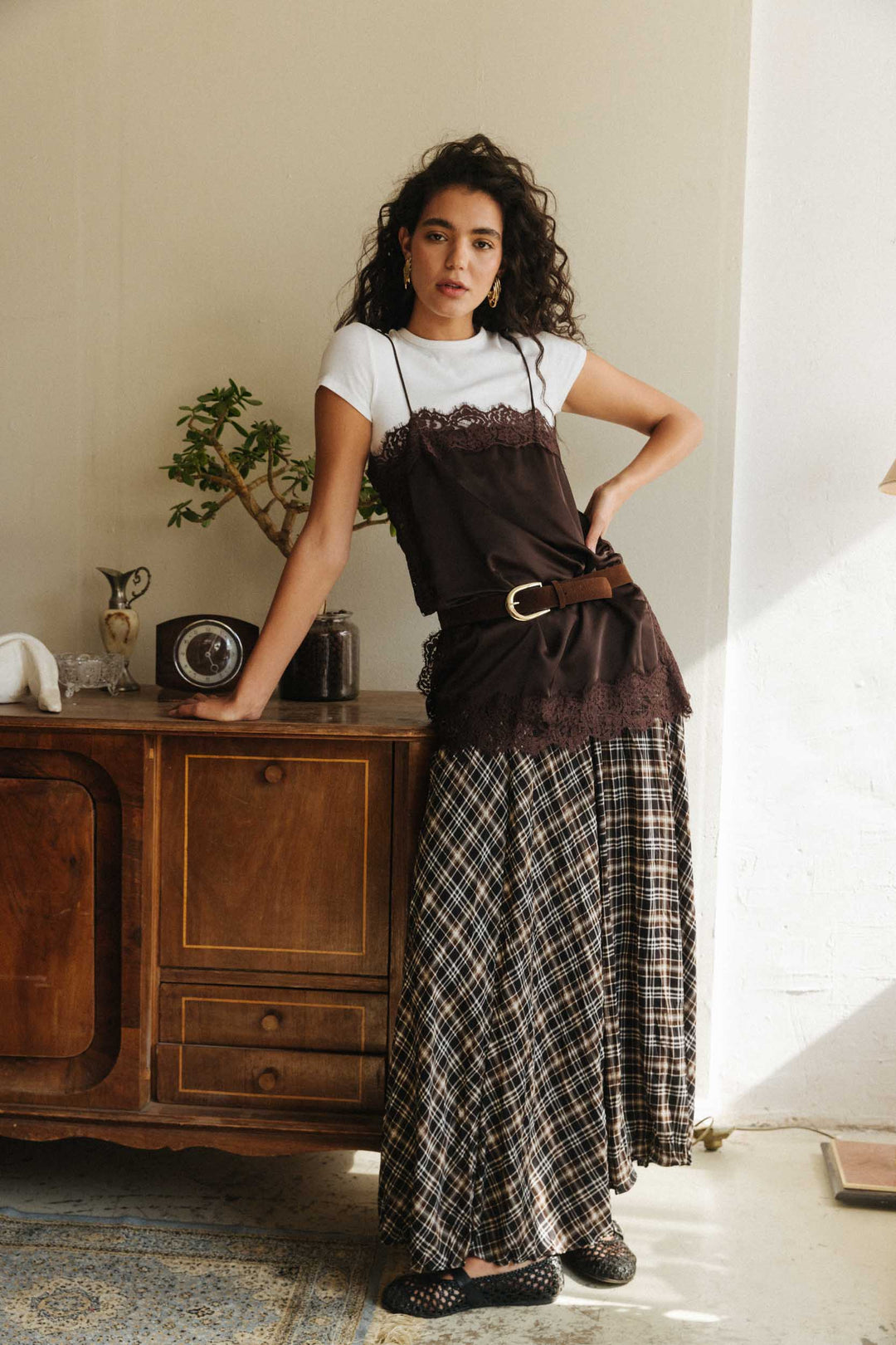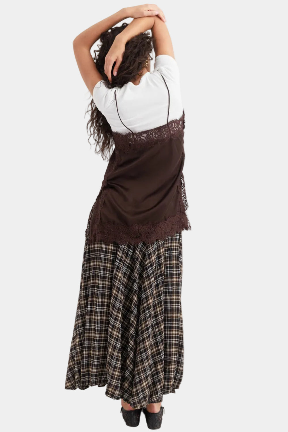 חצאית אנה משבצות - בז