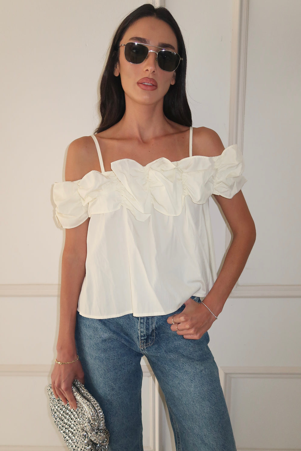 חולצת ראפל -לבן EXCLUSIVE
