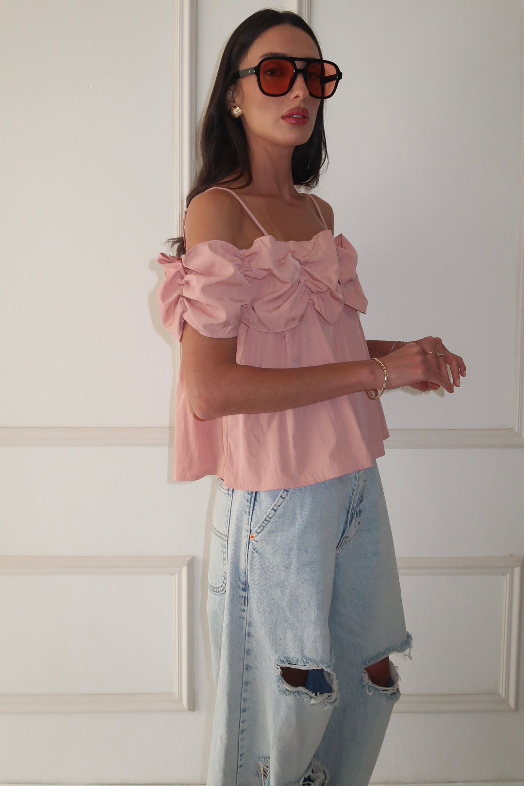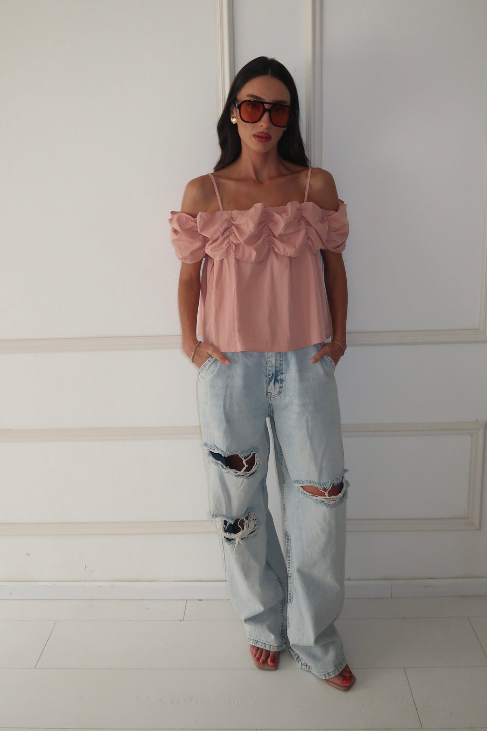 חולצת ראפל -ורוד