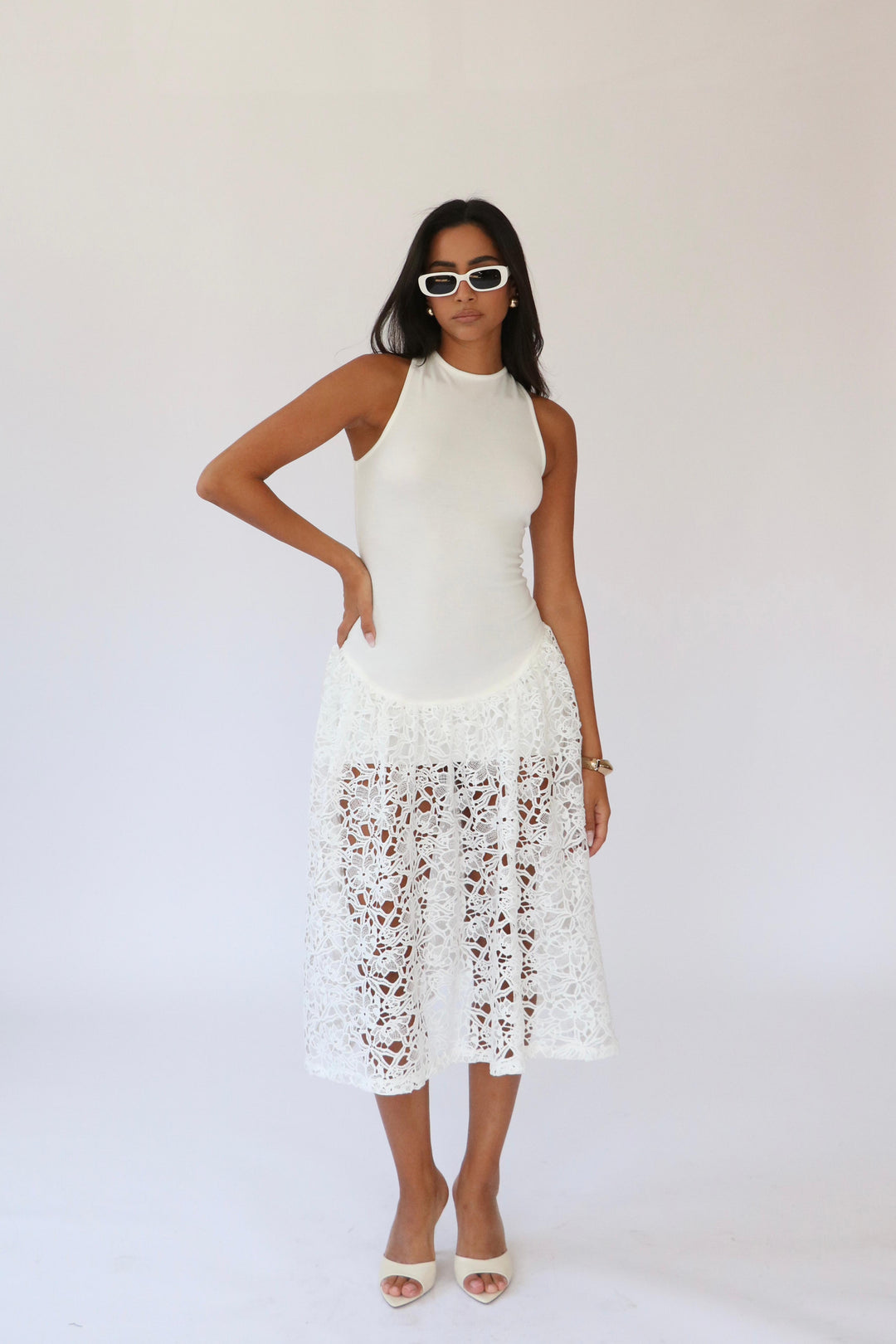 שמלת כתפיות פייטים מולי - לבן