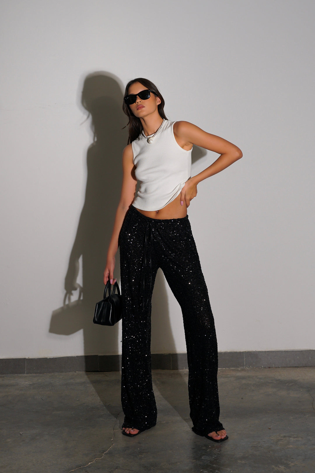 מכנסי פאייטים איירי - שחור