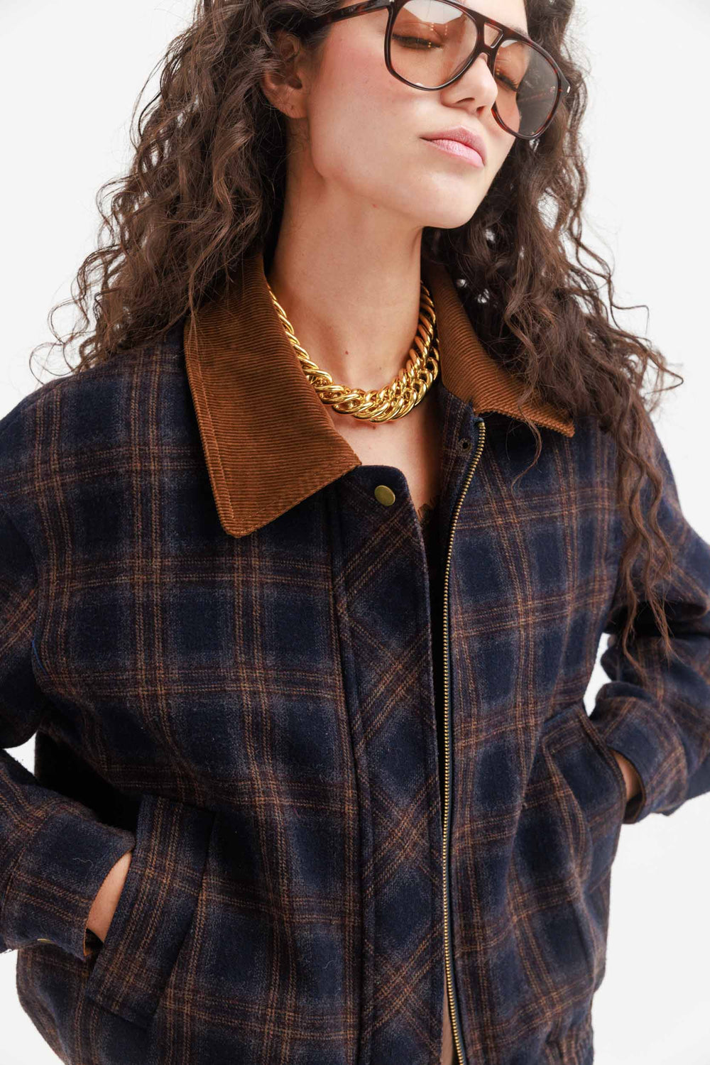 גקט משובץ נולי- כחול