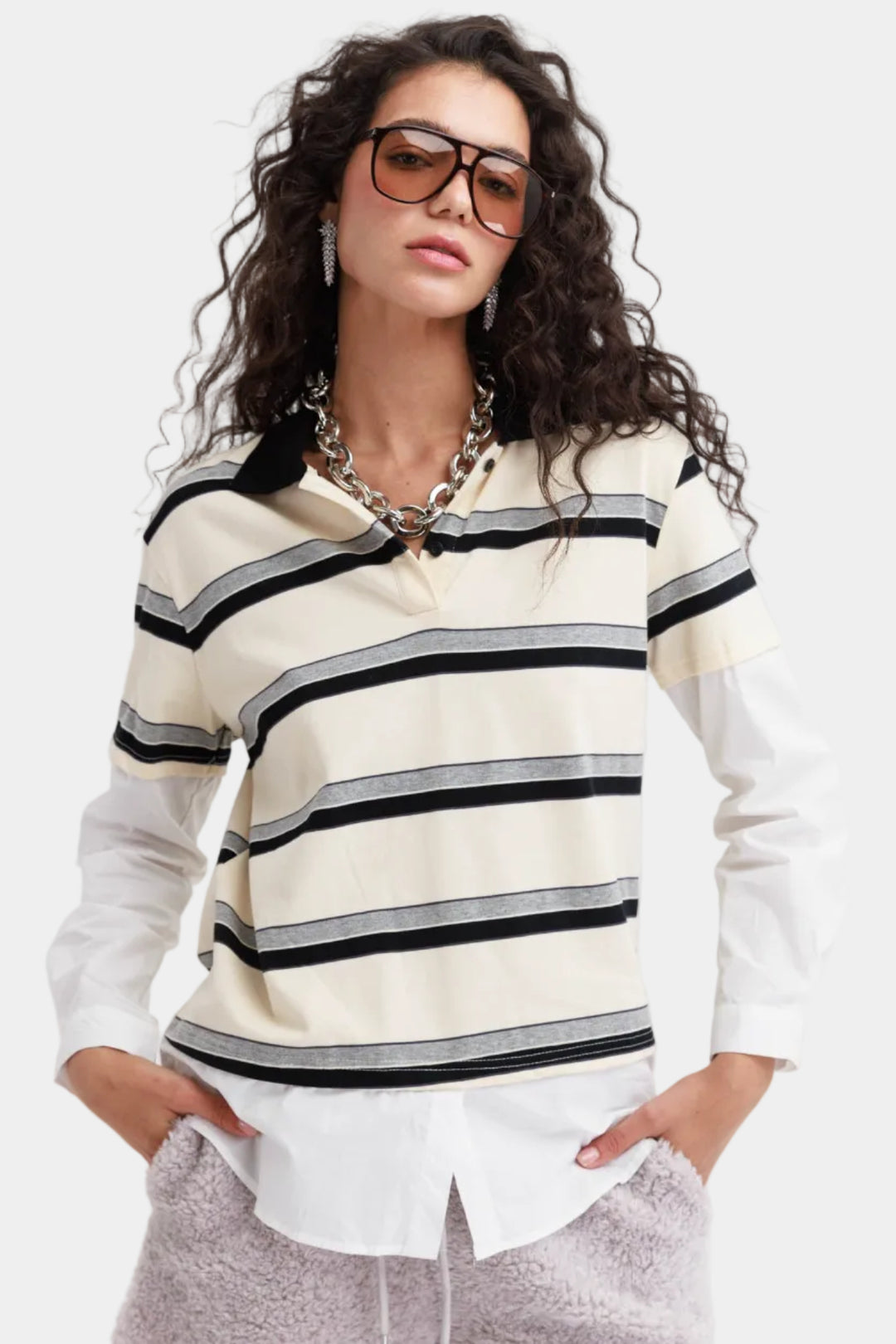 חולצת פסים לילי- אפור