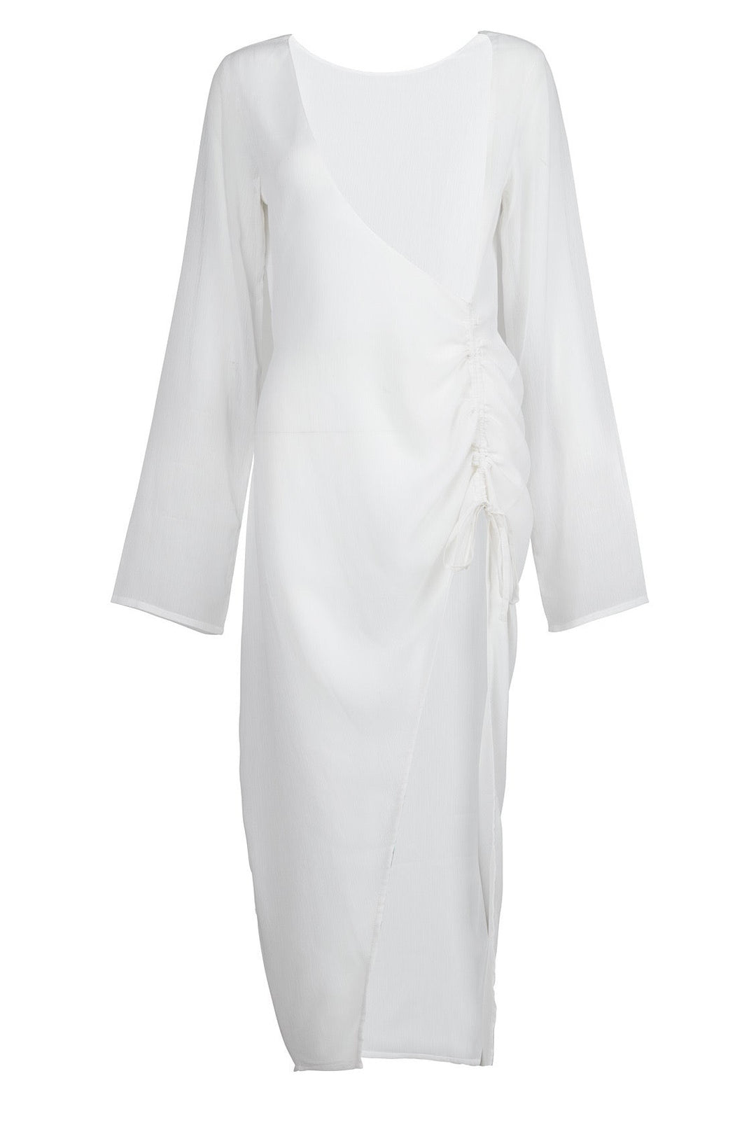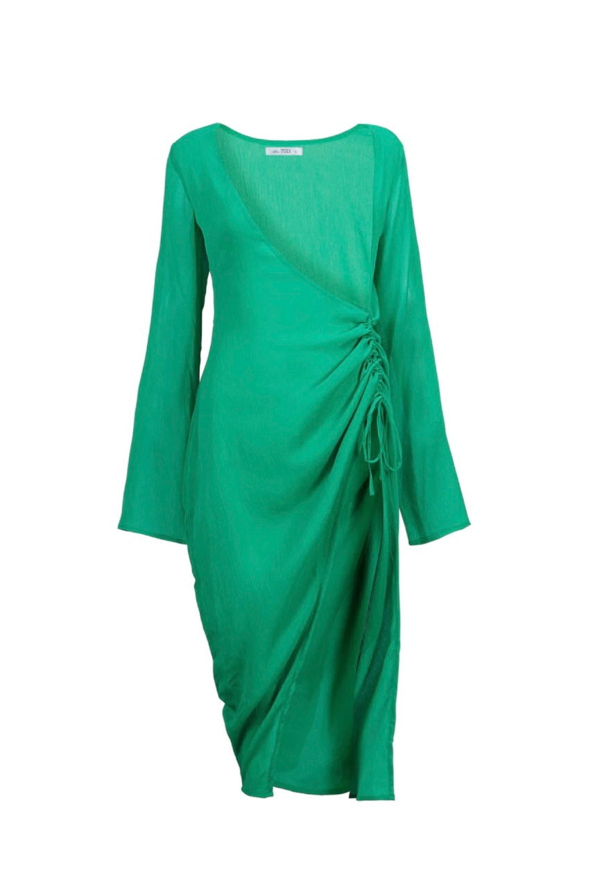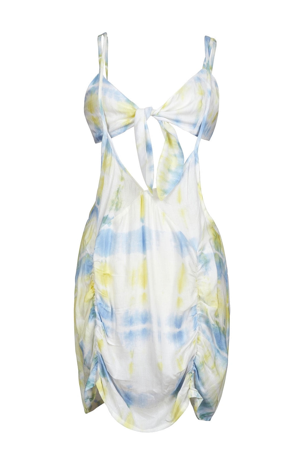 שמלת חוף צמודה כיווצים - צהוב -TIGHT BEACH DRESS COLOR YELLOW
