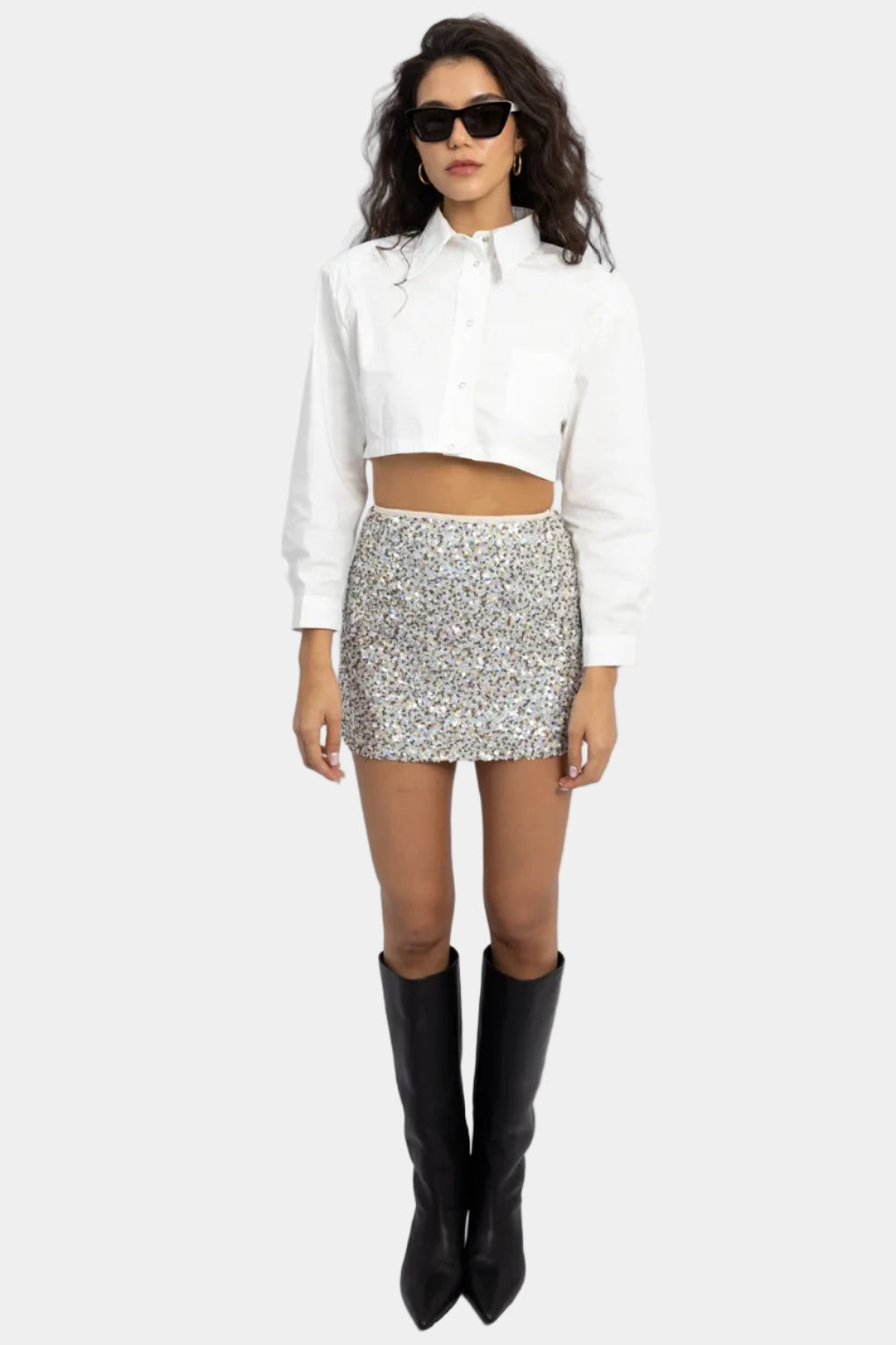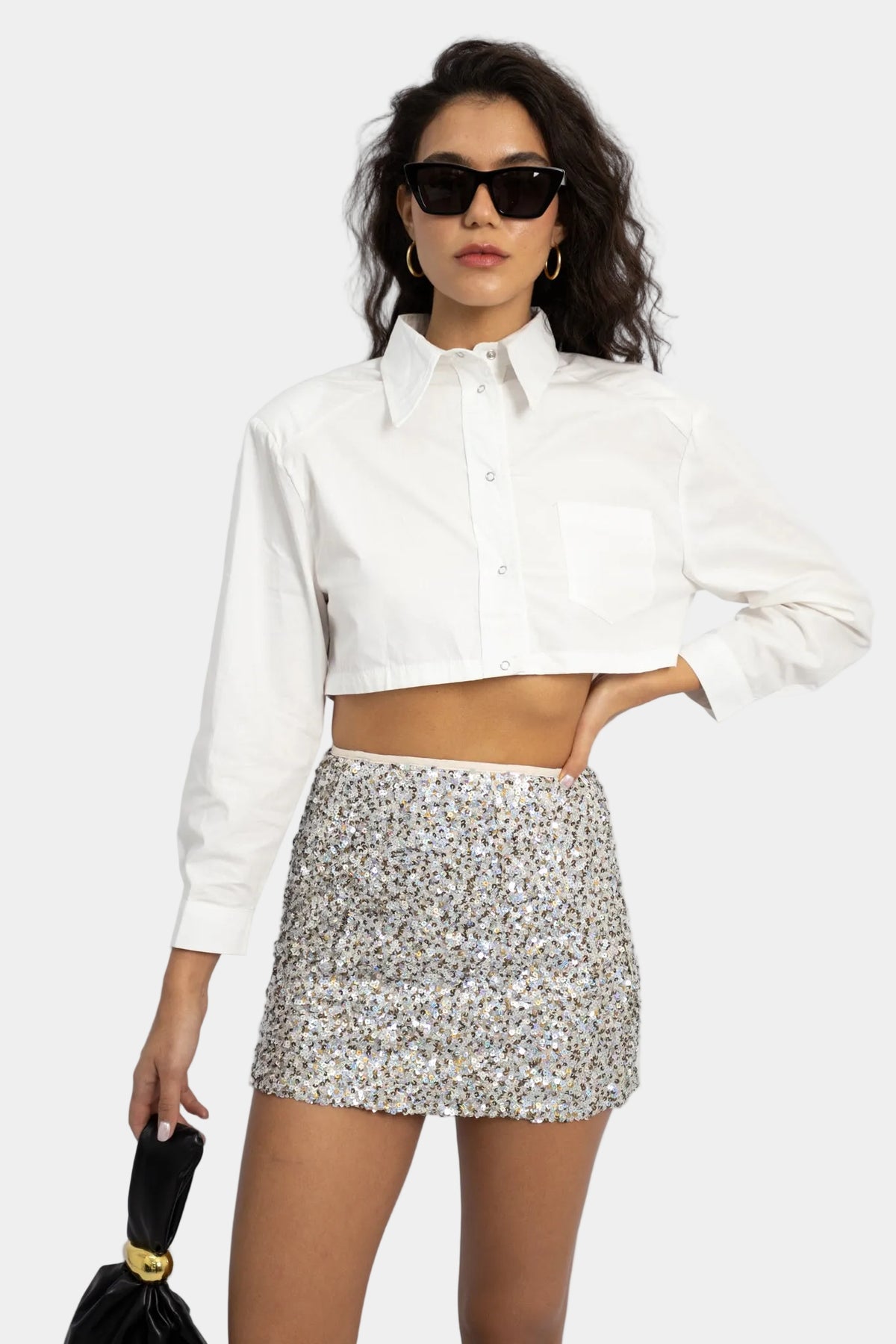 חולצת קרופ מכופתרת בגזרה מחויטת עם צווארון קלאסי, מראה נקי ומדויק שמשדר סטייל מודרני.