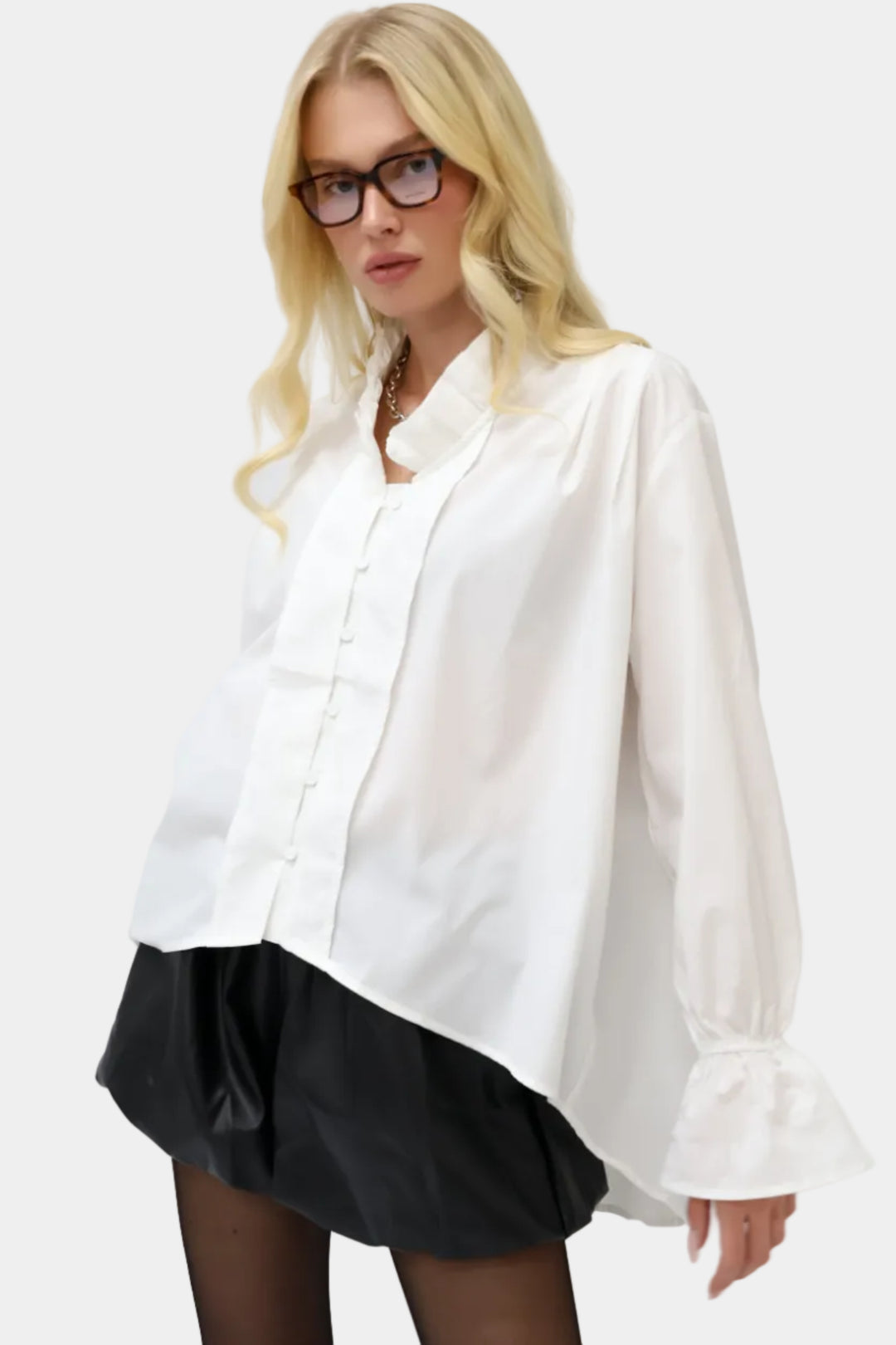 חולצה מכופתרת קרופ דני - לבן