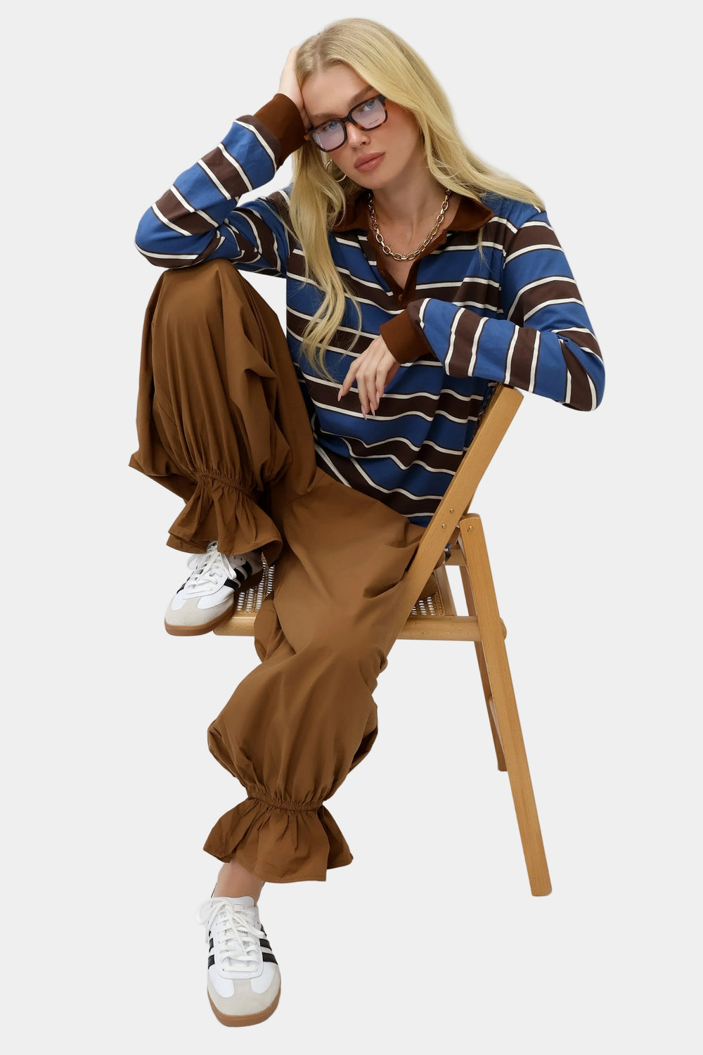 חולצת פסים אמה - כחול חום