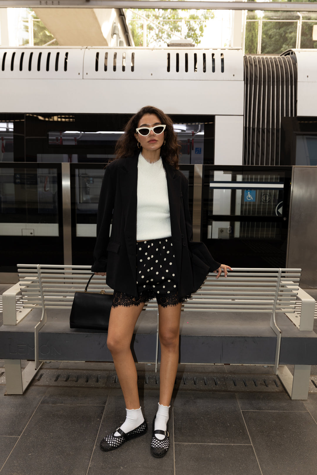 מכנסי שורטס פולקה - שחור נקודות