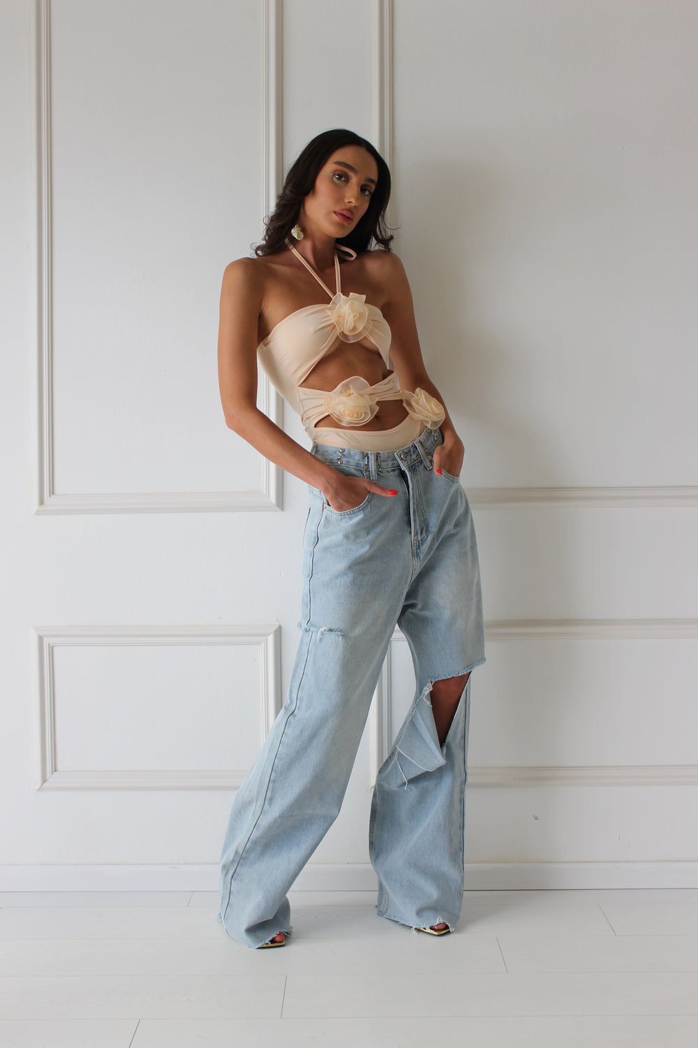 בגד ים בקיני תחתון סטרפ צהוב/בז