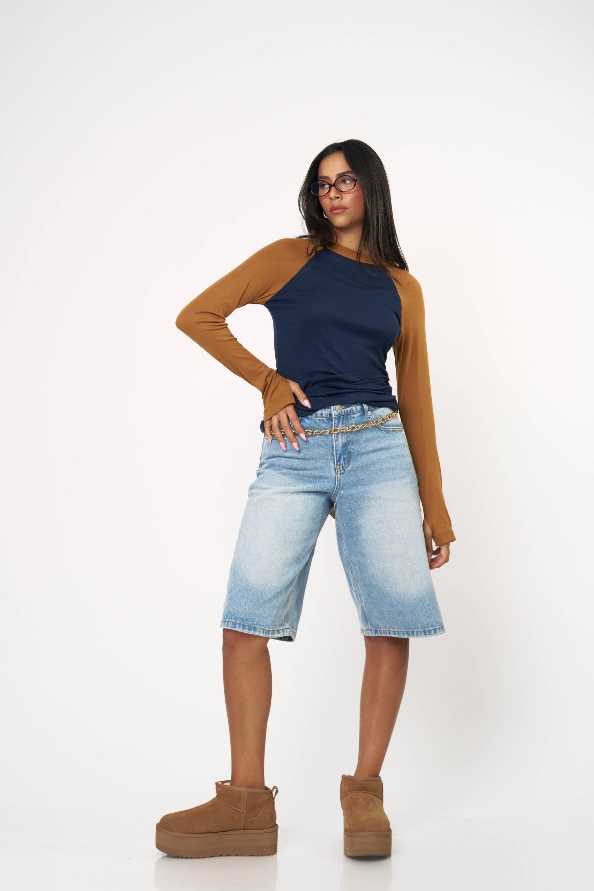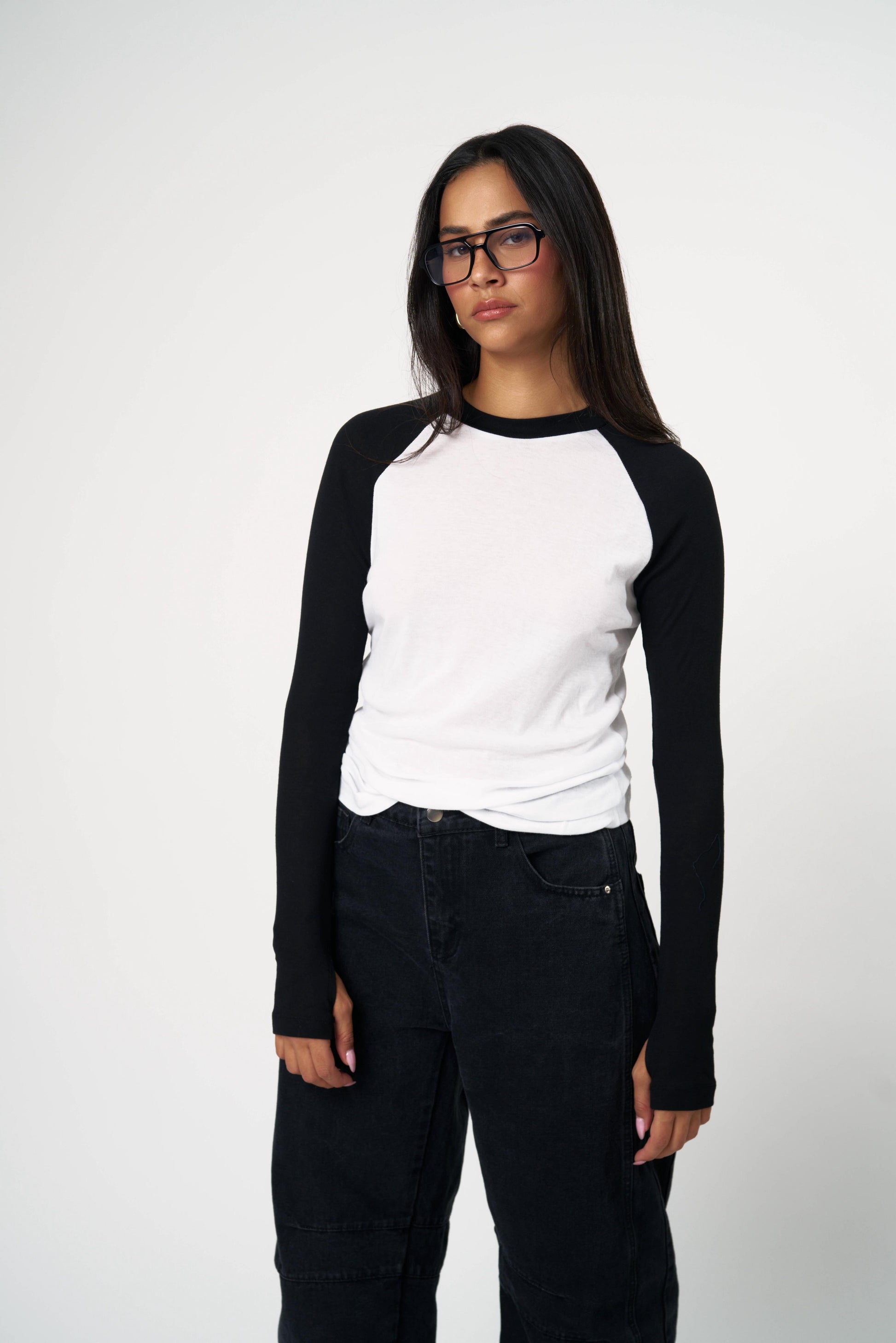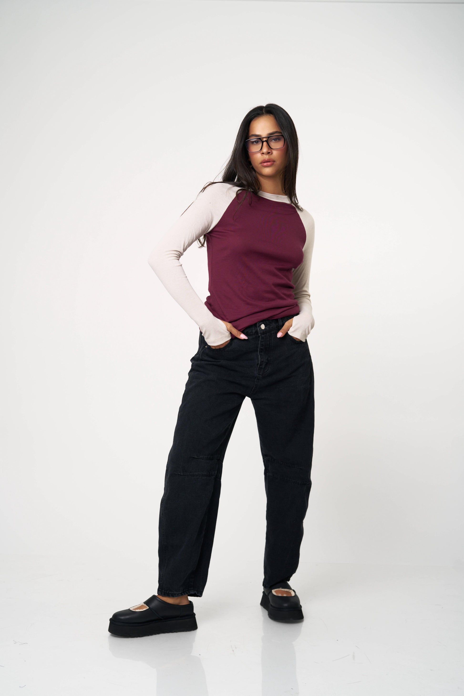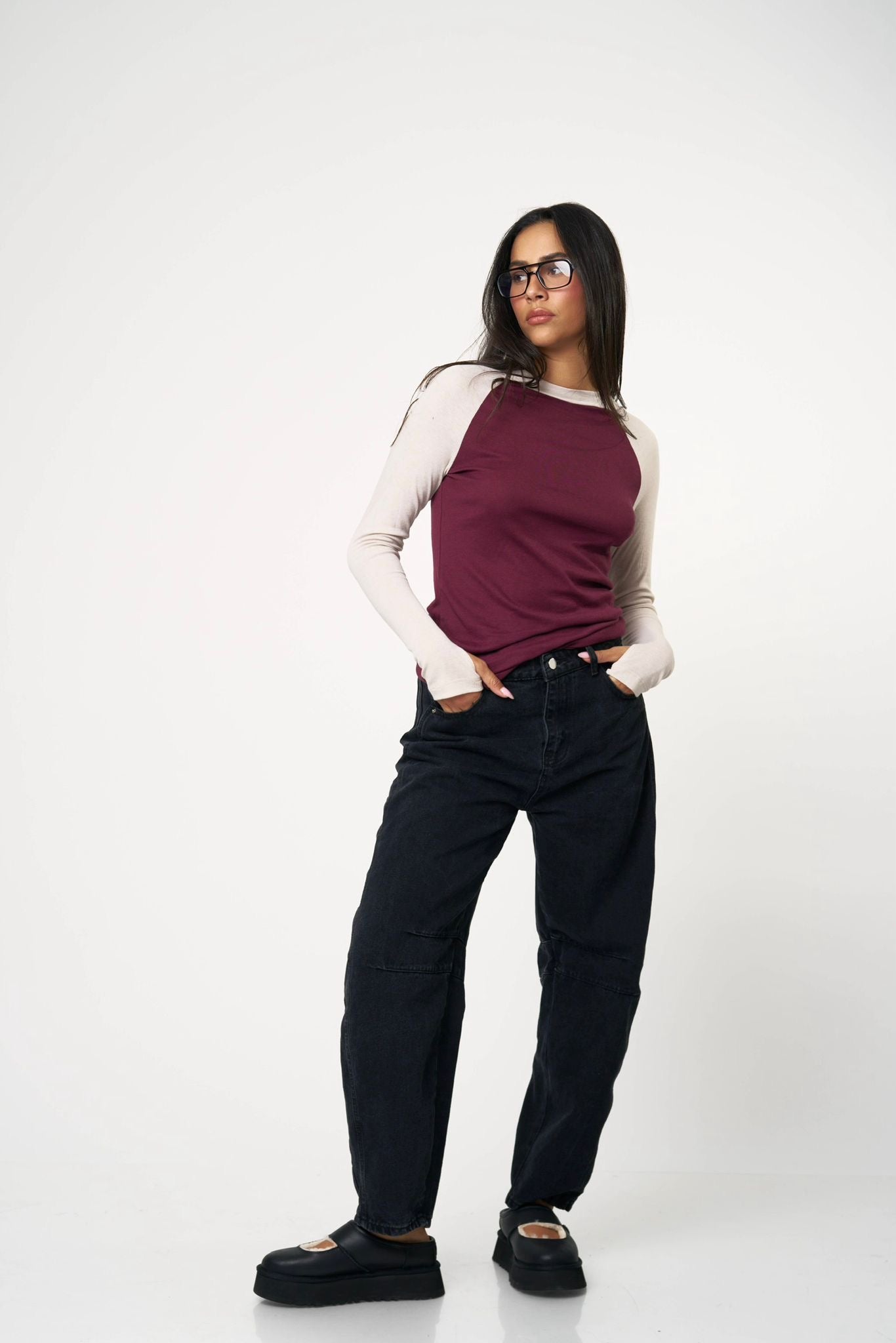 חולצת רגלן קלאסית בגזרת יוניסקס עם עיצוב צבעוני דו-גוני. שילוב של שרוולים בצבע מנוגד וגזרה מעט משוחררת יוצר לוק רטרו-קולי עם נגיעה עכשווית. מושלמת לשכבות או כפריט עצמאי לסטייל יומיומי נינוח.