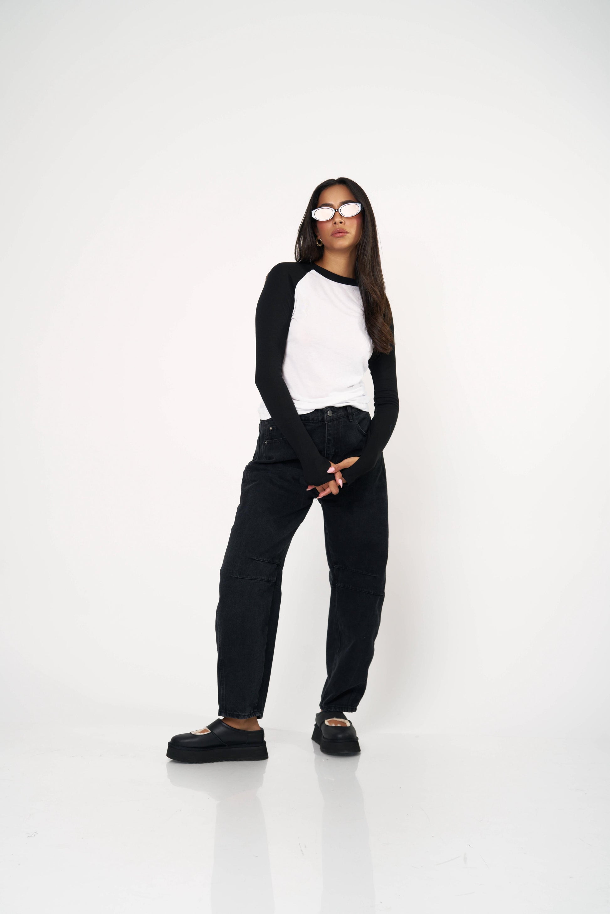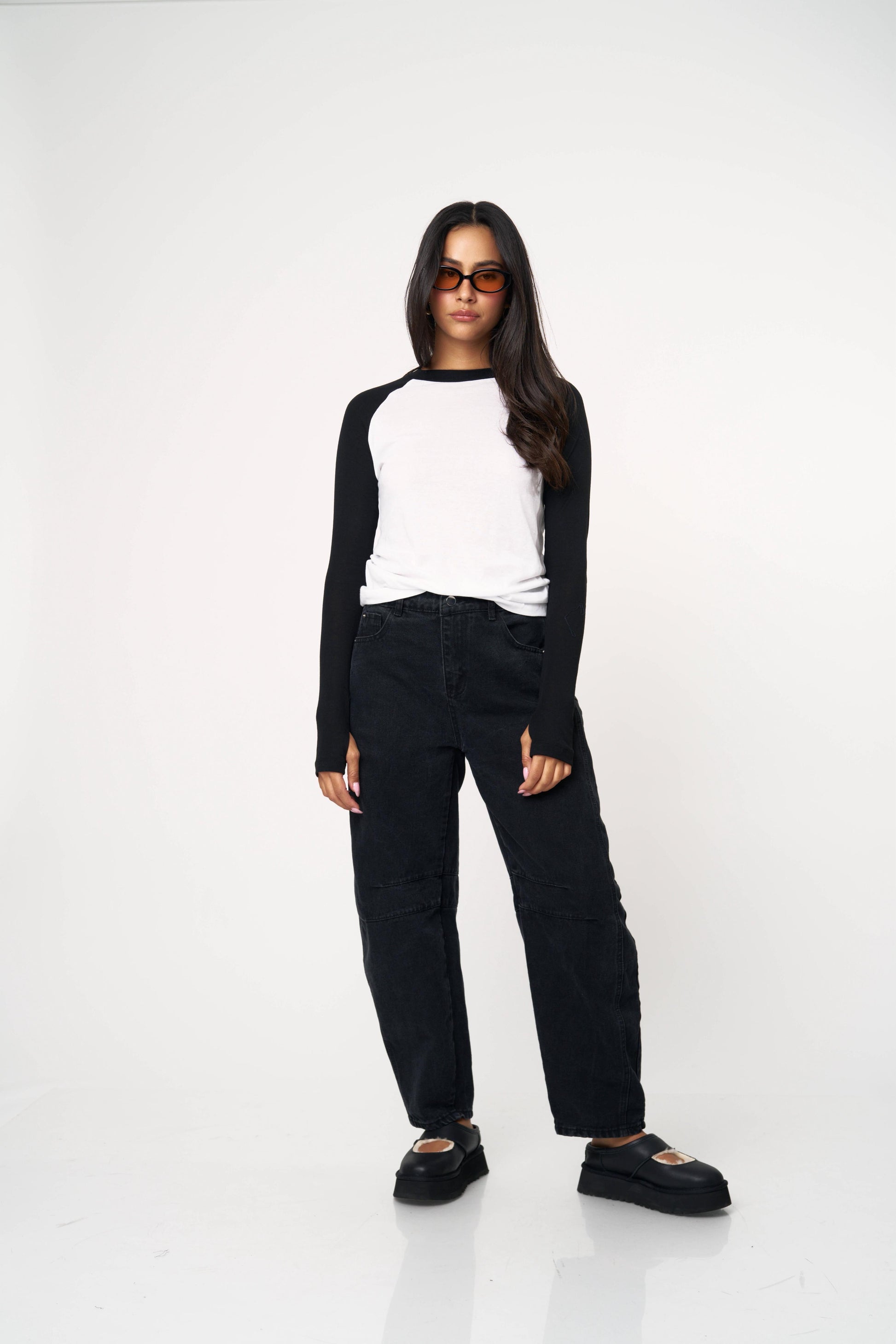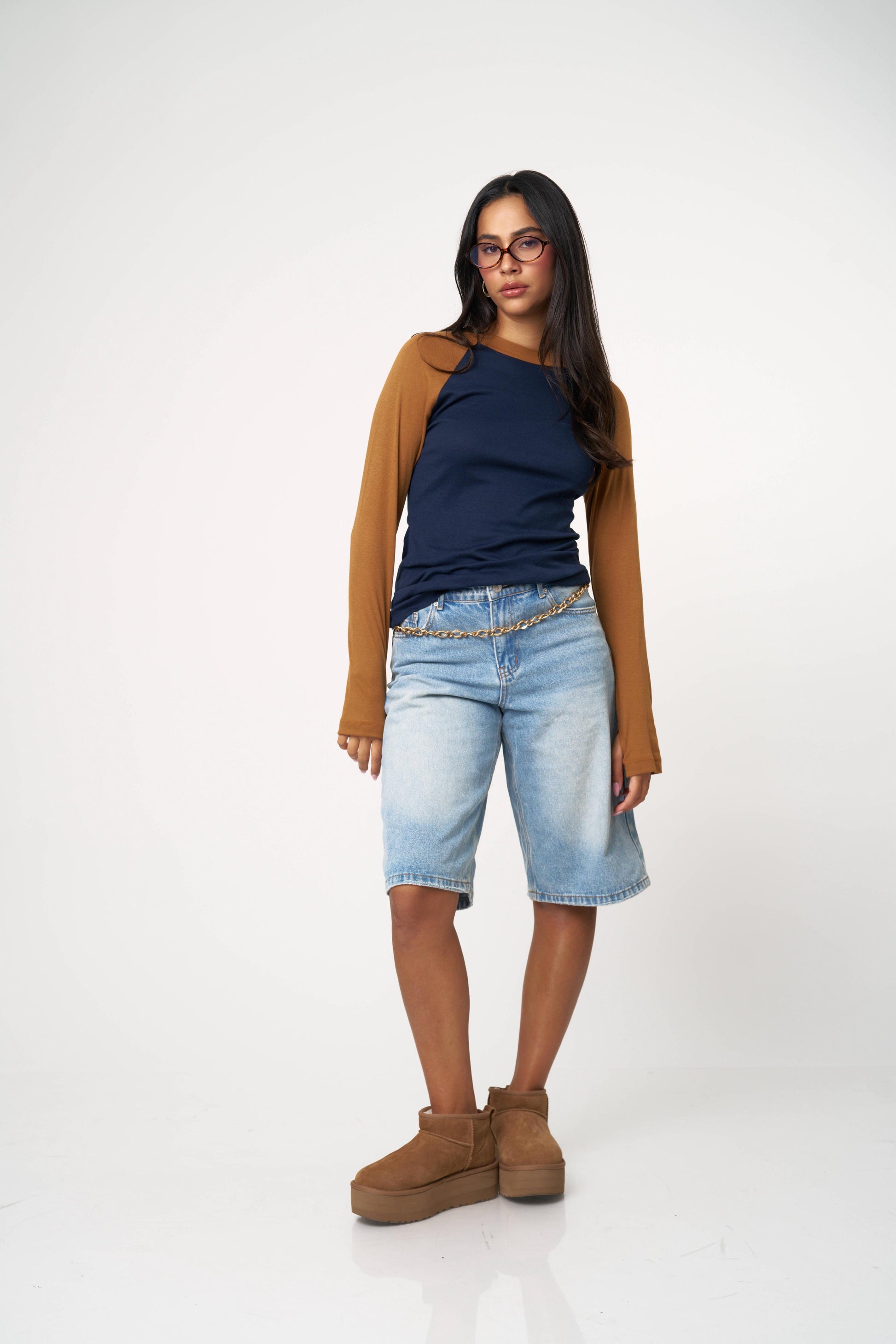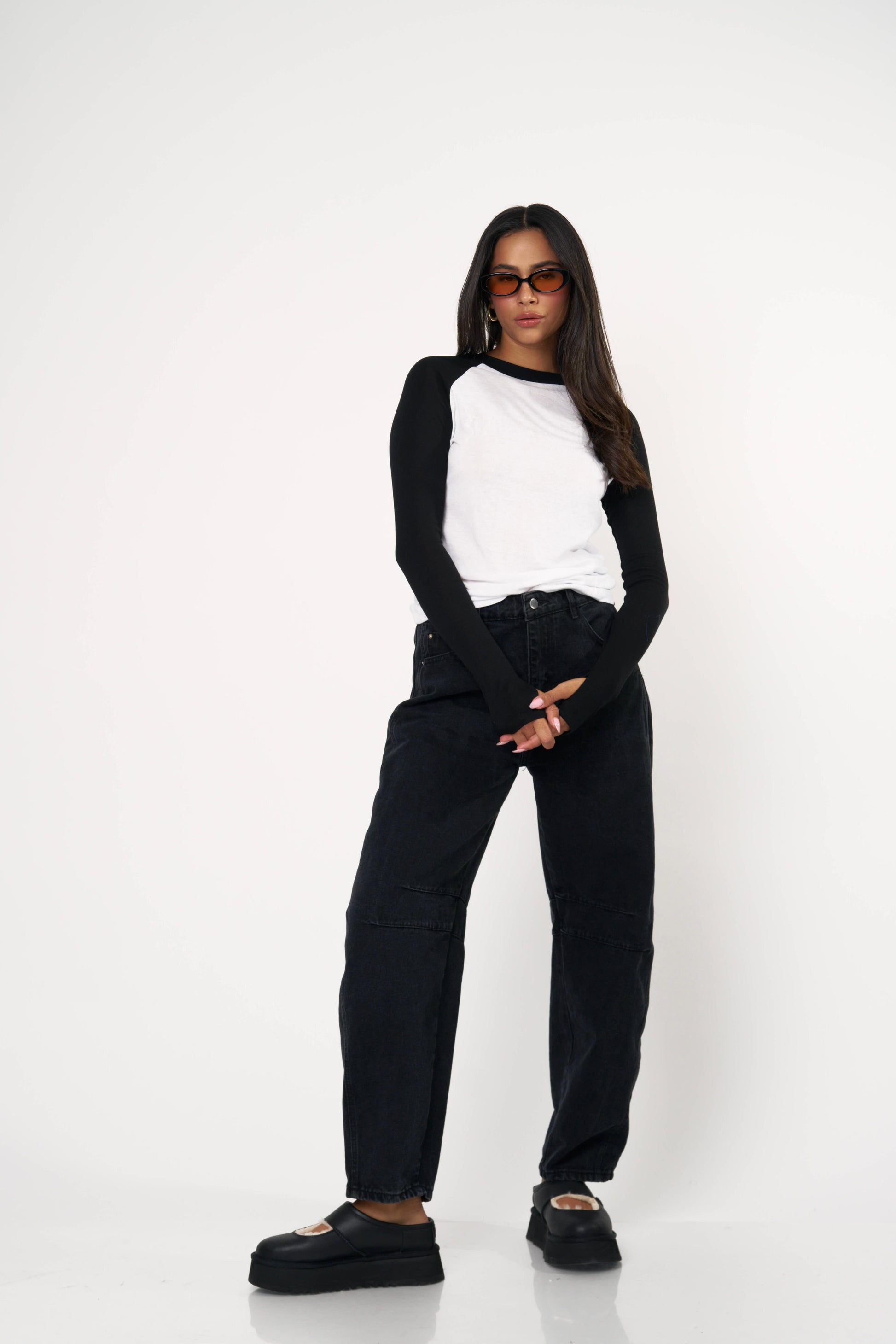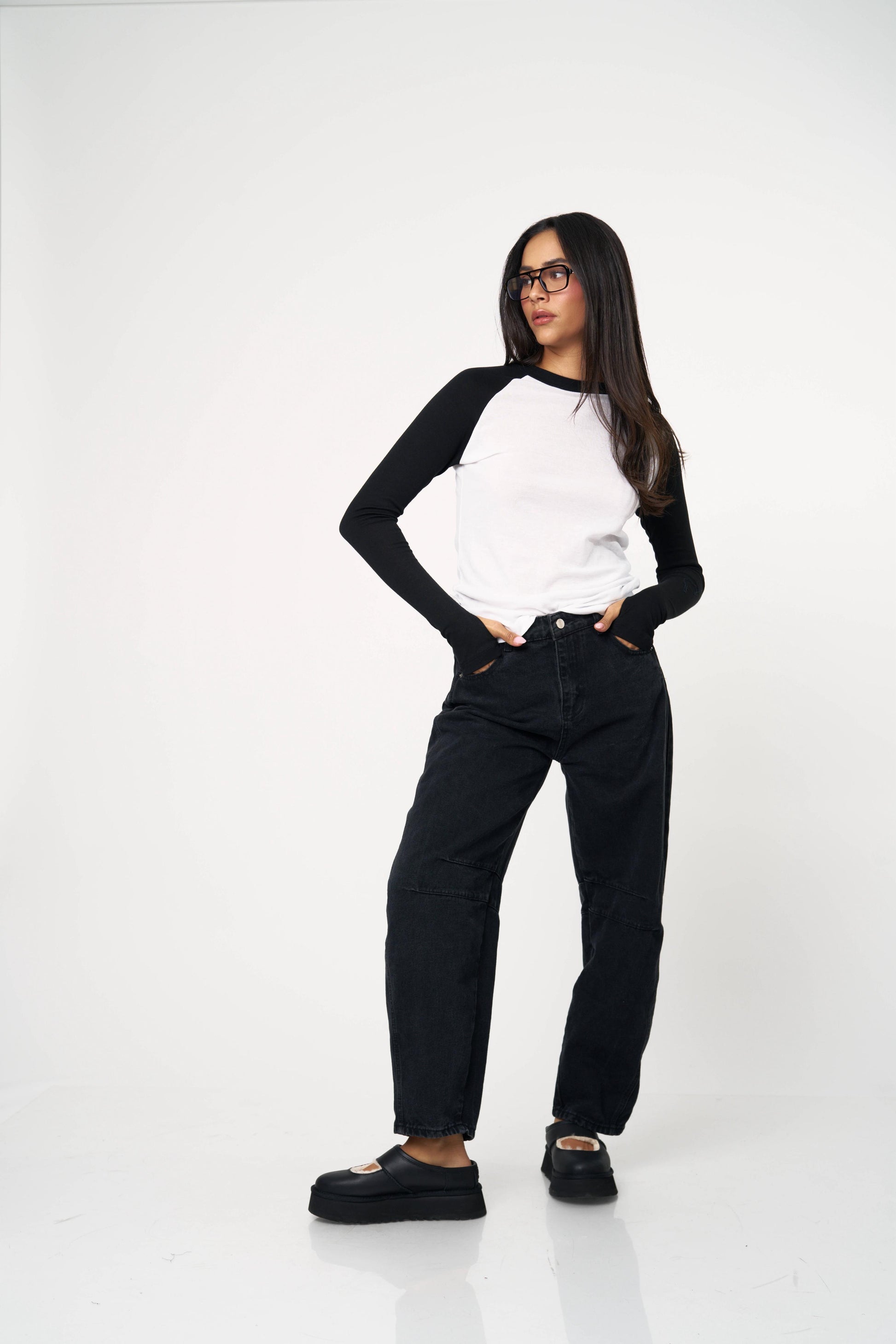 חולצת רגלן קלאסית בגזרת יוניסקס עם עיצוב צבעוני דו-גוני. שילוב של שרוולים בצבע מנוגד וגזרה מעט משוחררת יוצר לוק רטרו-קולי עם נגיעה עכשווית. מושלמת לשכבות או כפריט עצמאי לסטייל יומיומי נינוח.