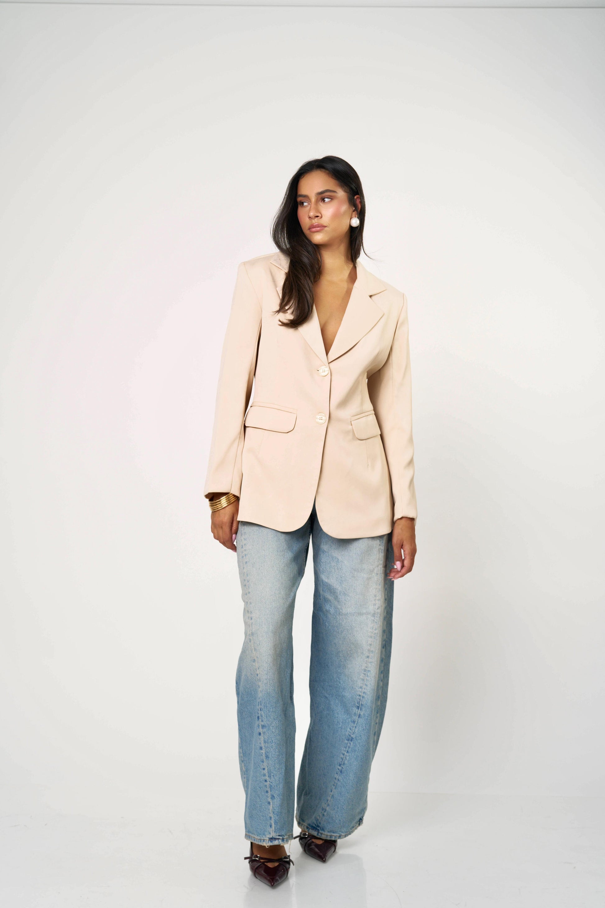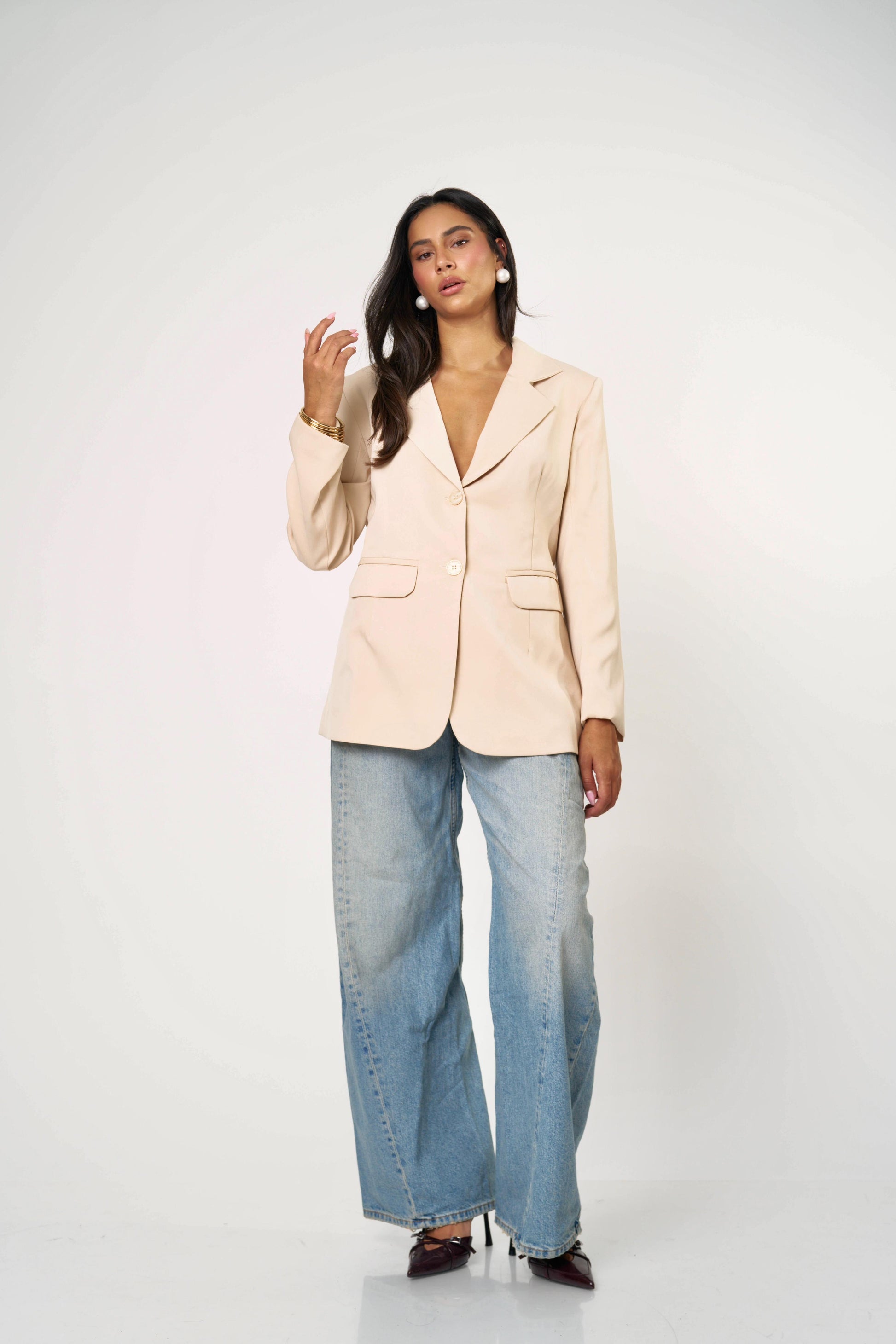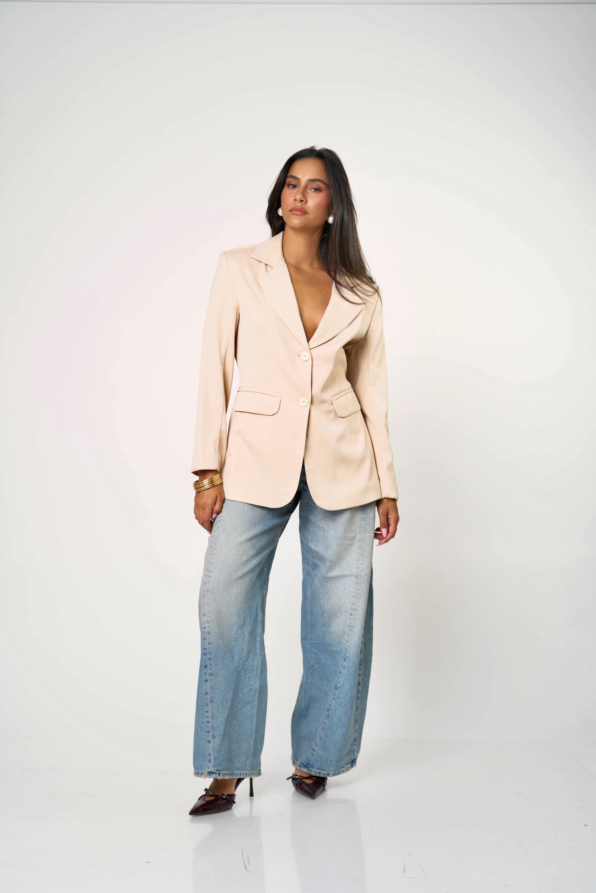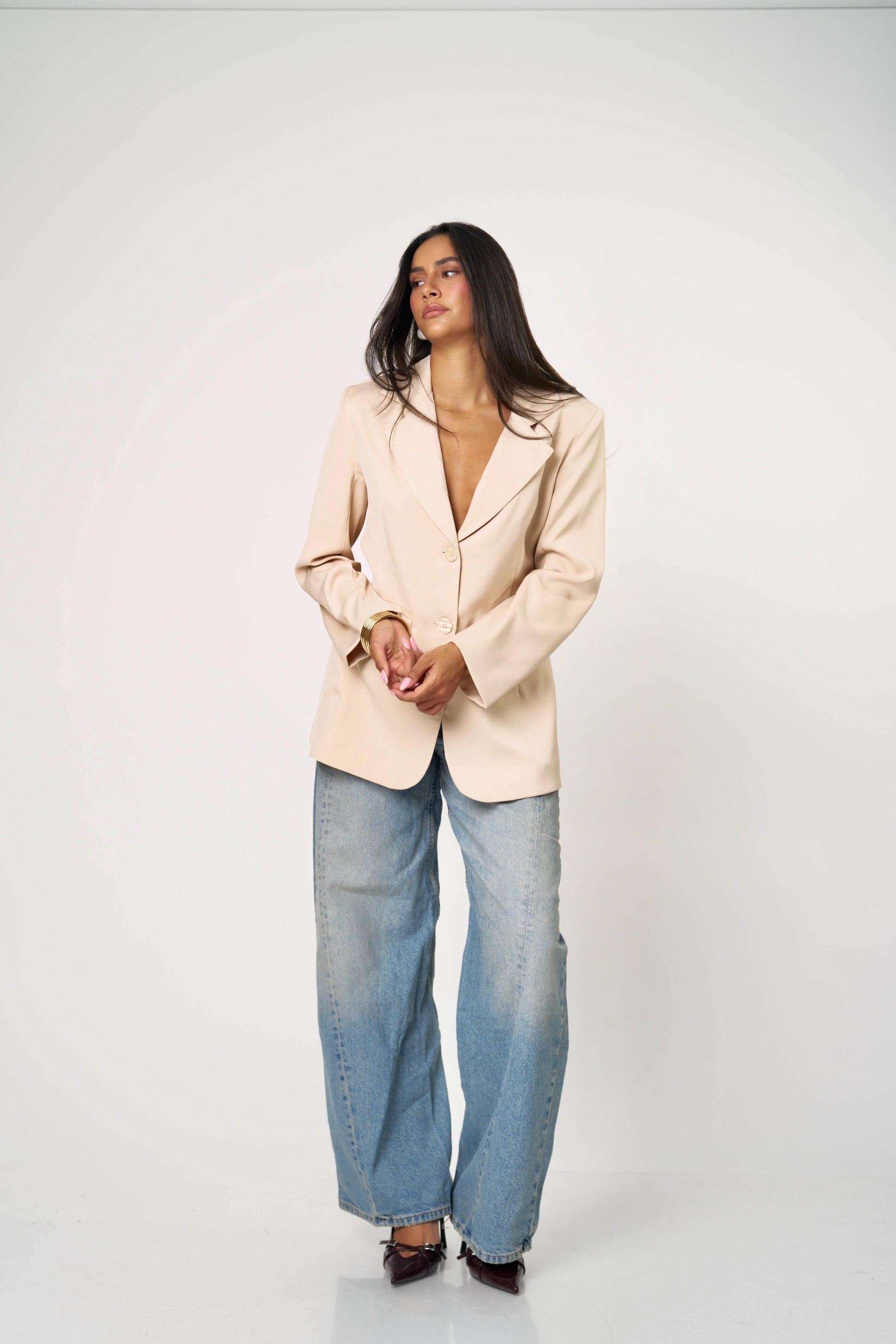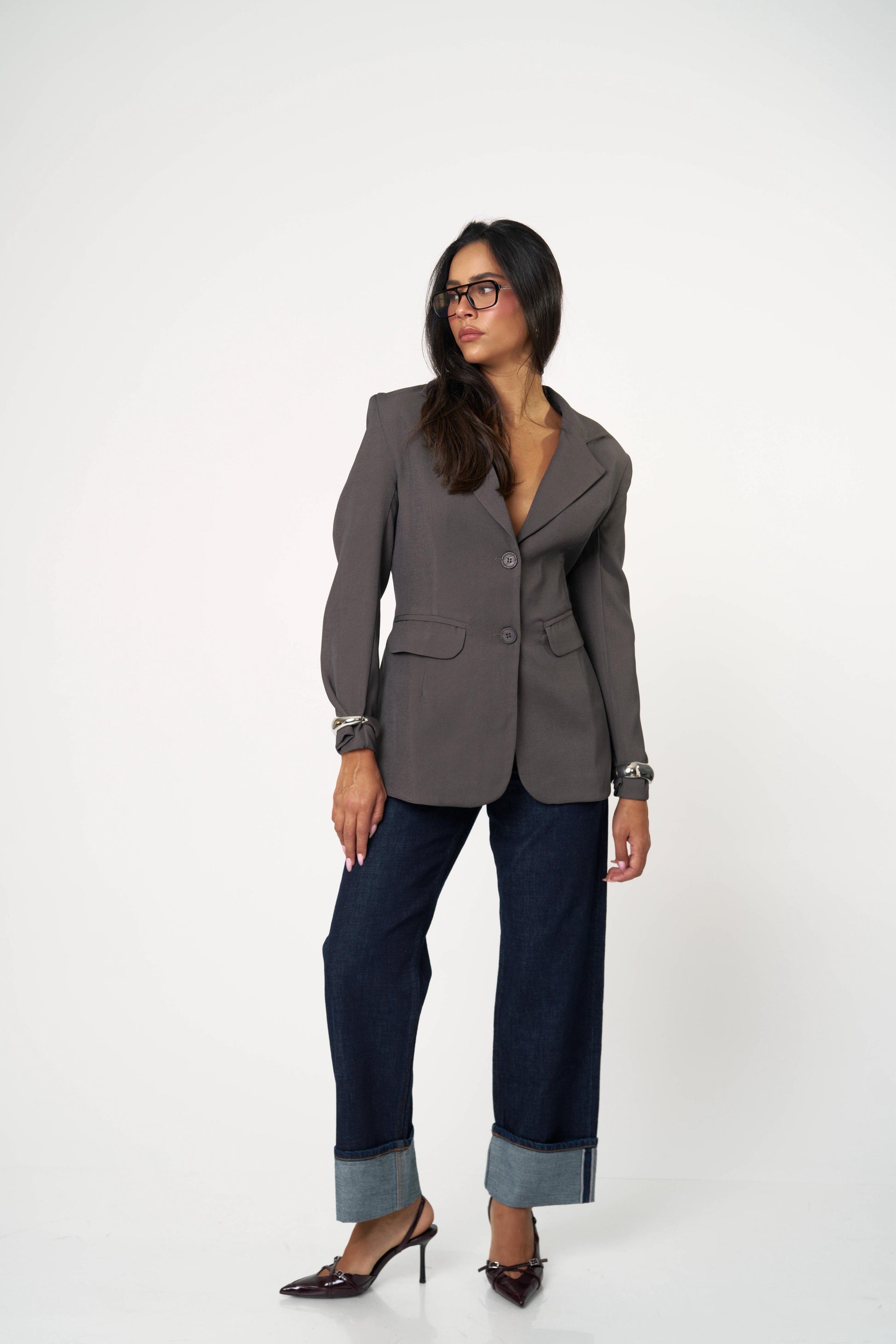 בלייזר קלאסי עם טוויסט נועז ואלגנטי — גזרה מחויטת בחזית ומראה דרמטי מאחור עם גב פתוח וקשירות כפולות. שילוב מושלם בין לוק רשמי לנשיות חושנית. מתאים גם ליום עם ג’ינס וגם לערב עם חצאית נוצצת.