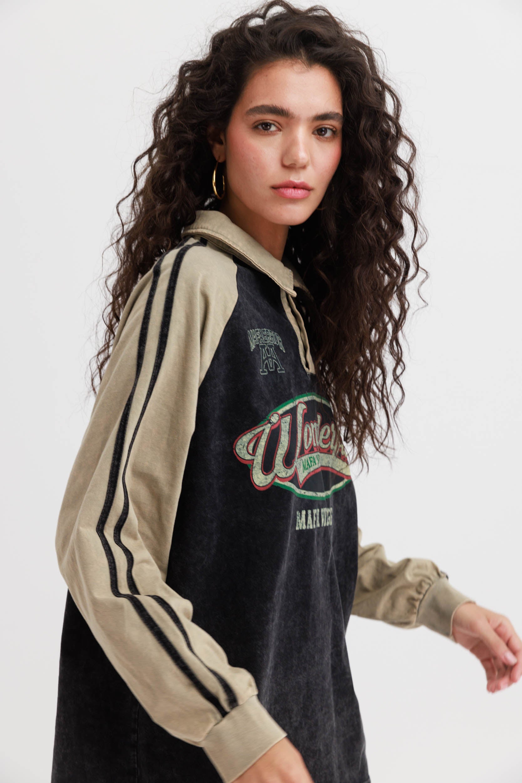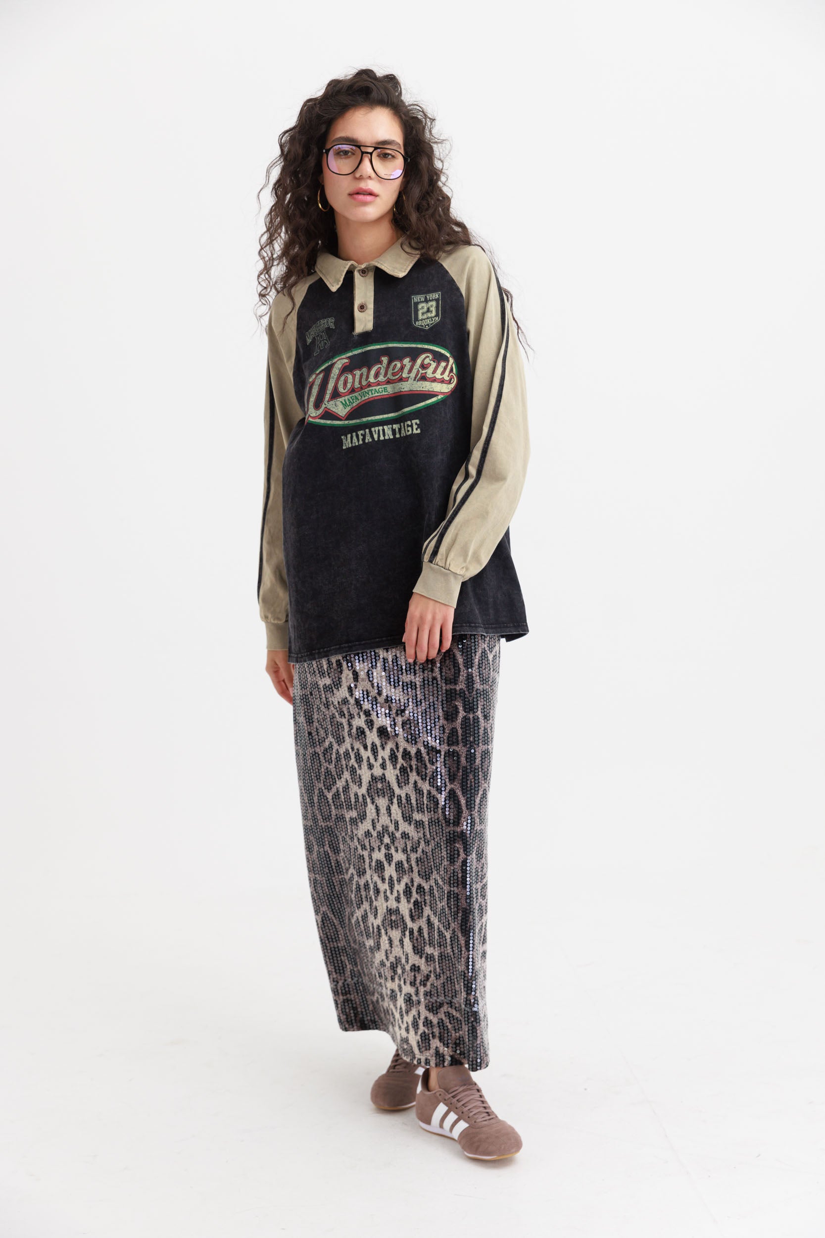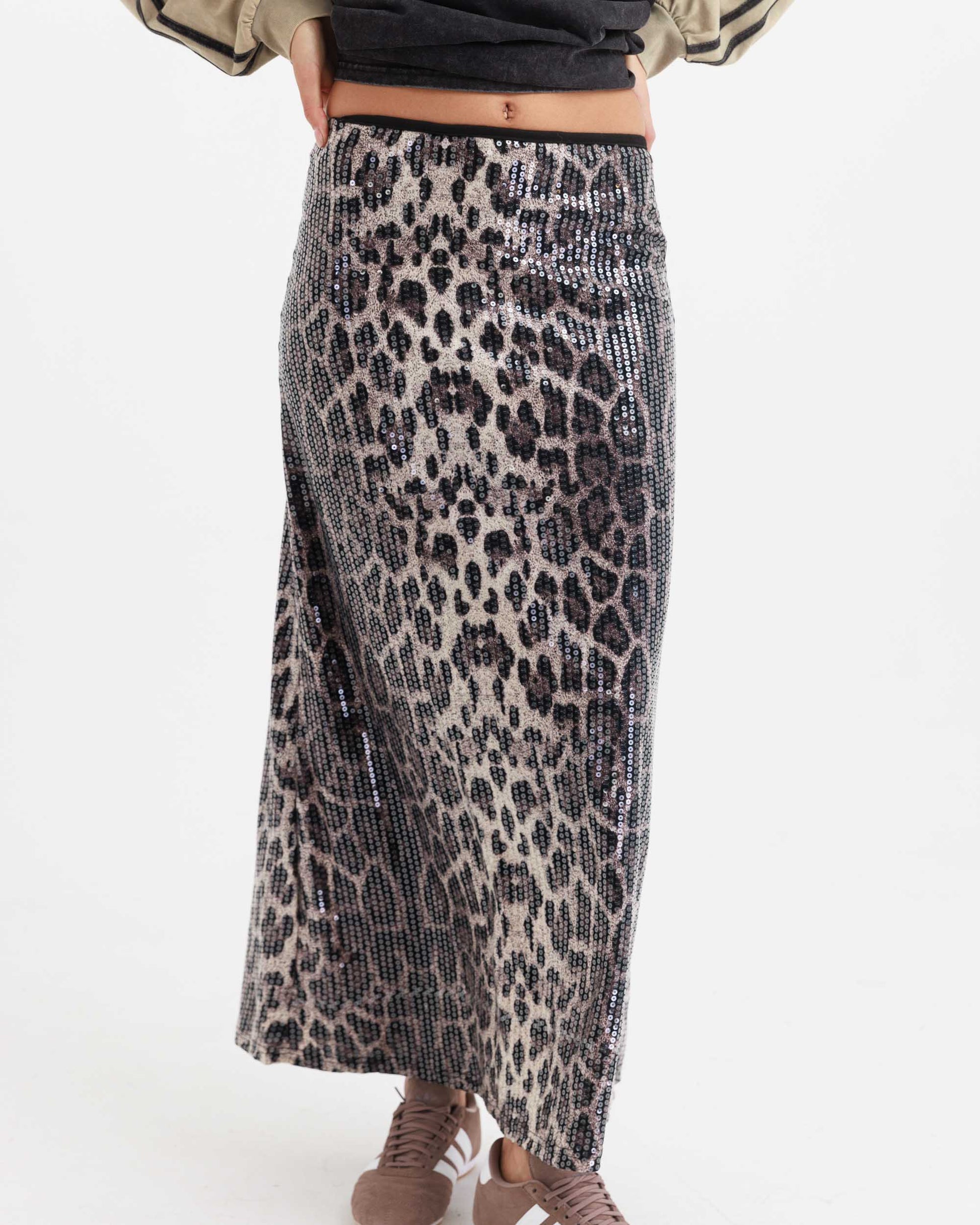 חצאיצ מבד פאייטים עם הדפס מנוחש אפור