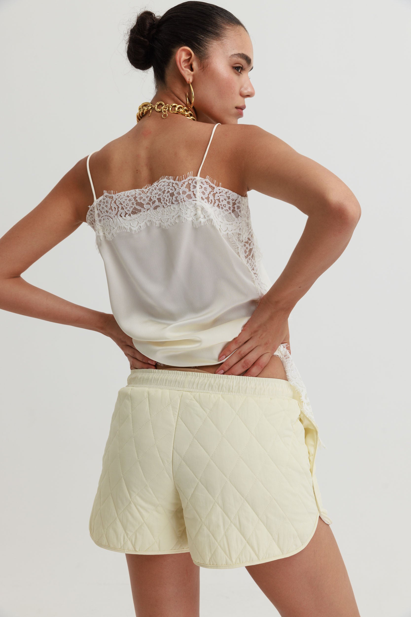 גם בשוליים התחתונים של הטופ מופיע פס תחרה תואם, היוצר מסגרת אלגנטית ונקייה