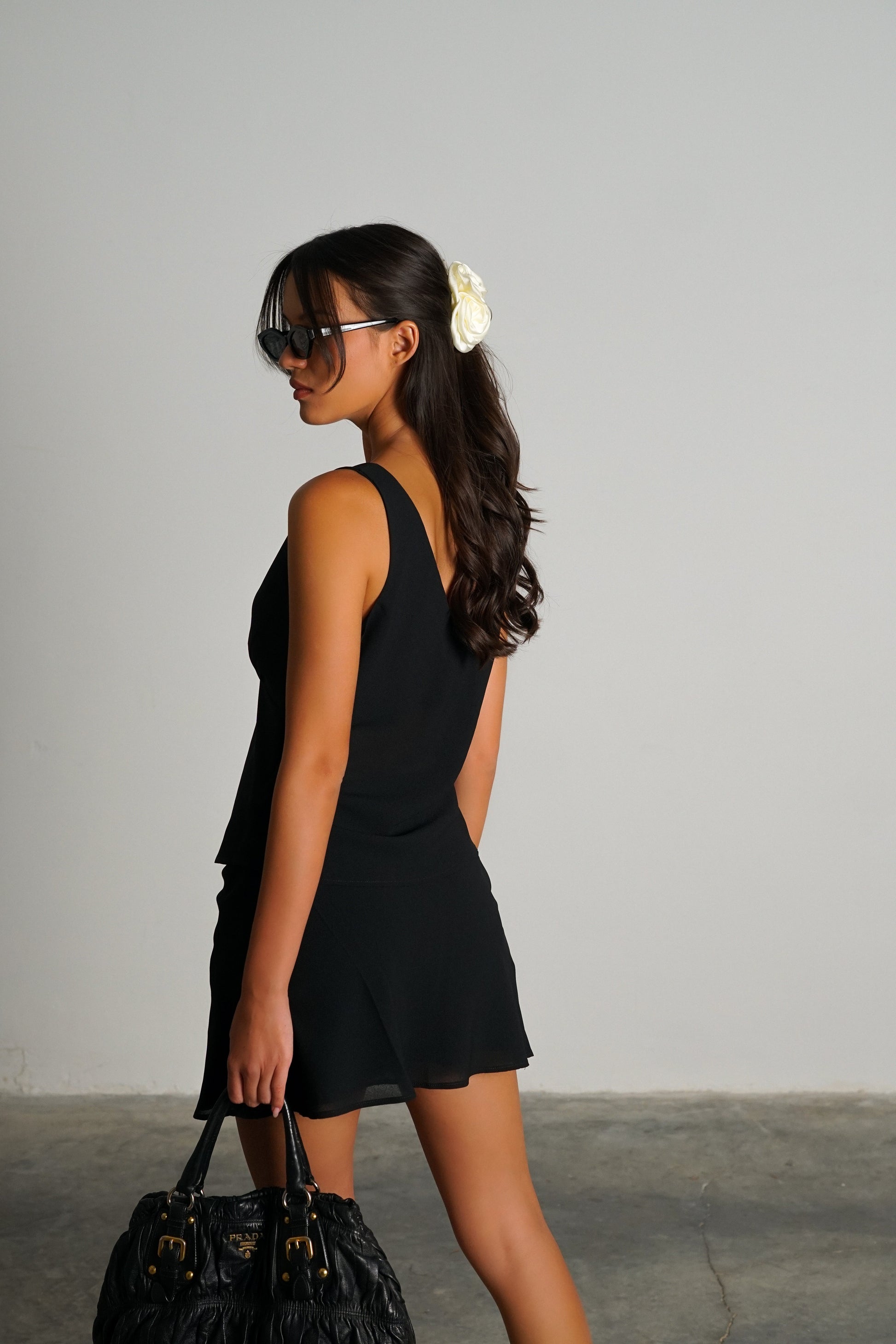 A טופ עם מחשוף וי עם פרח עדין | חצאית מיני גזרת