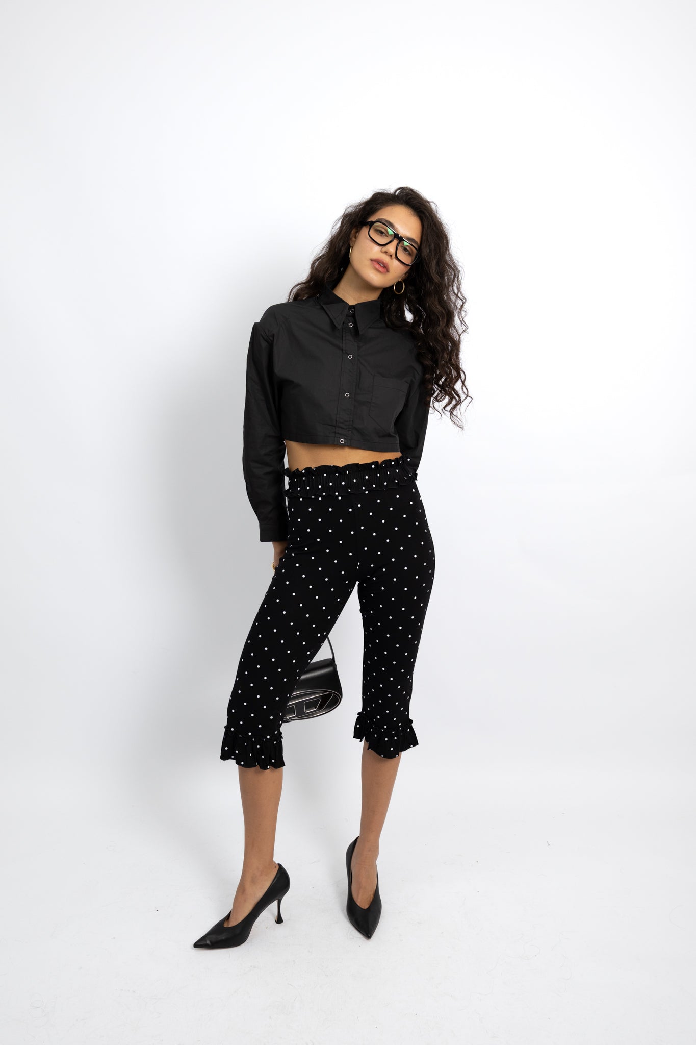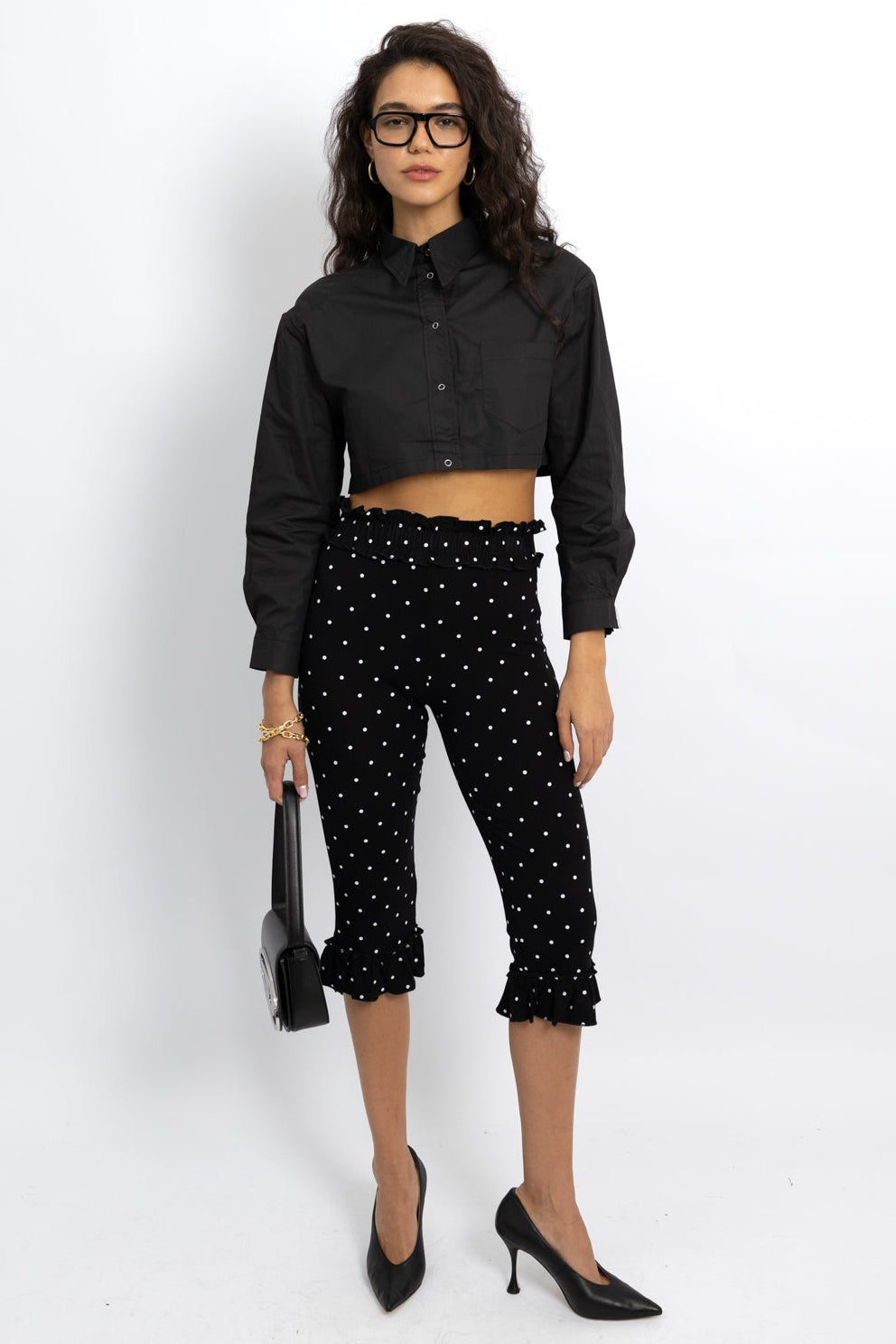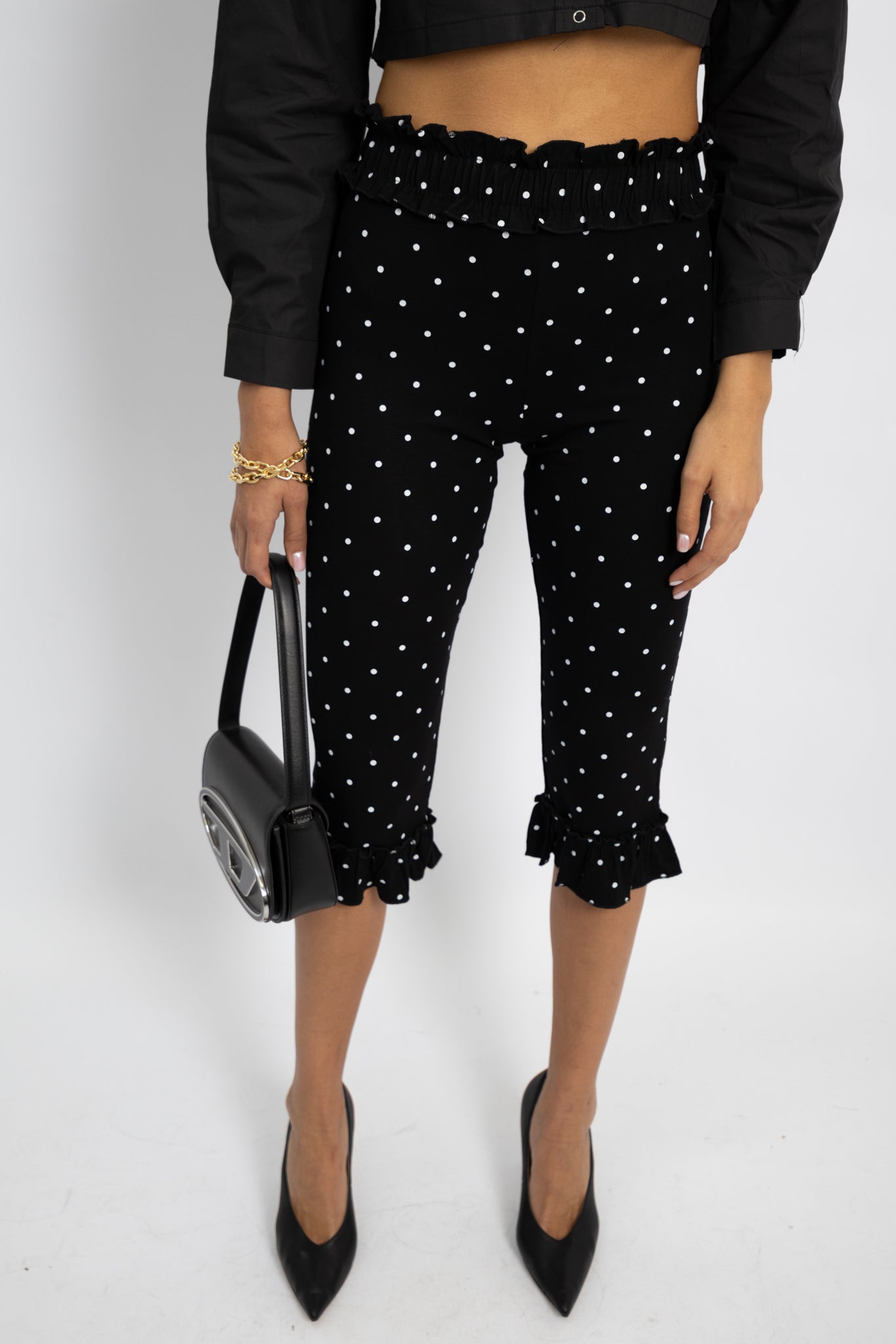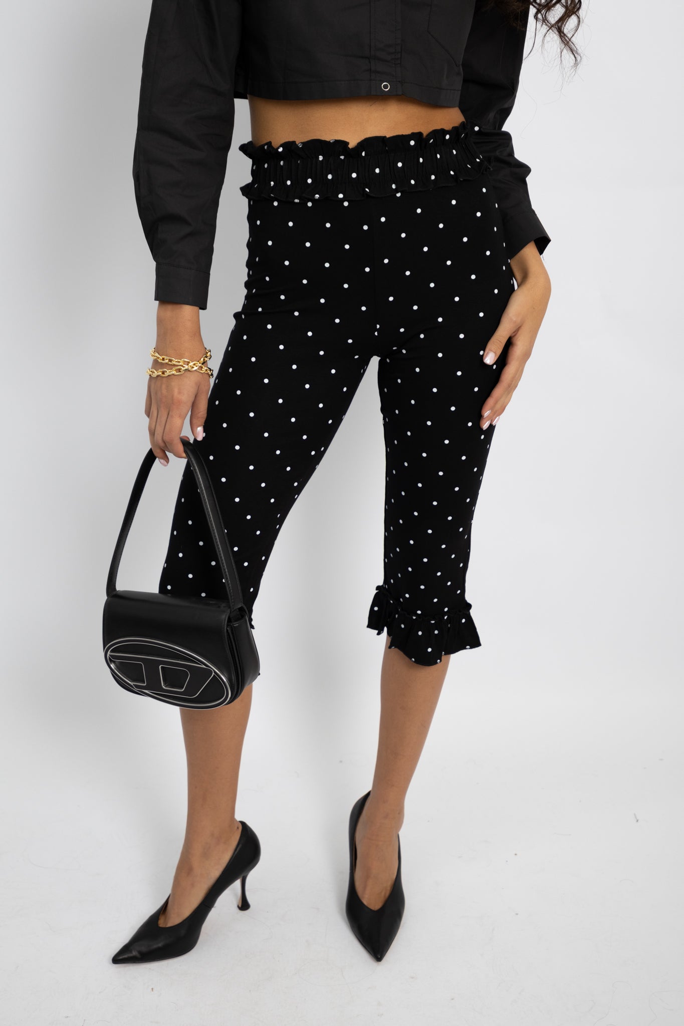 טייץ נקודות שחור עם מותן מחמיאה ושוליים קפוצים, יושב נוח ומוסיף לוק מתוק וייחודי.