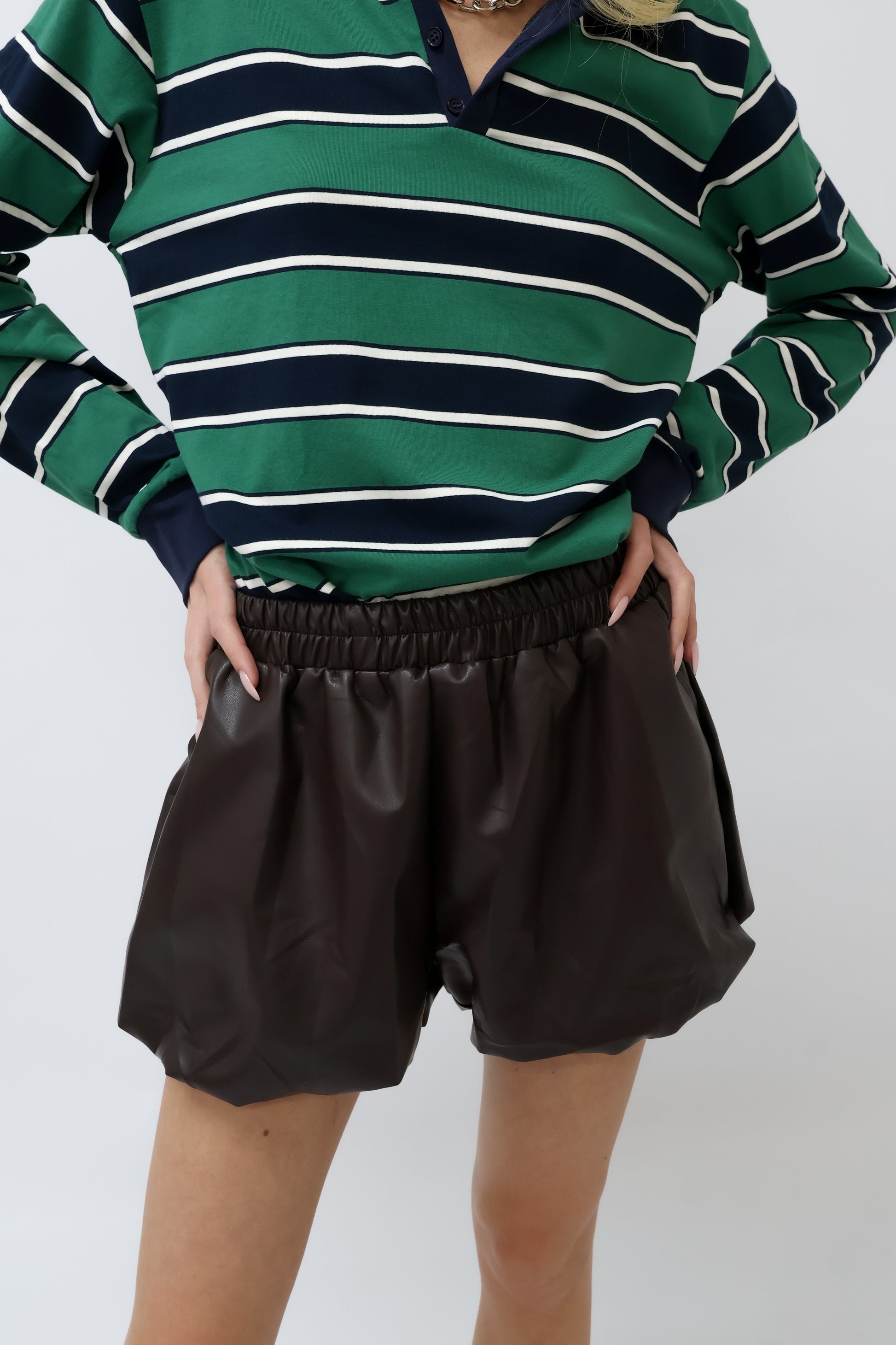 מכנסי דמוי עור קצרים בגזרת בלון עדינה עם גומי במותן