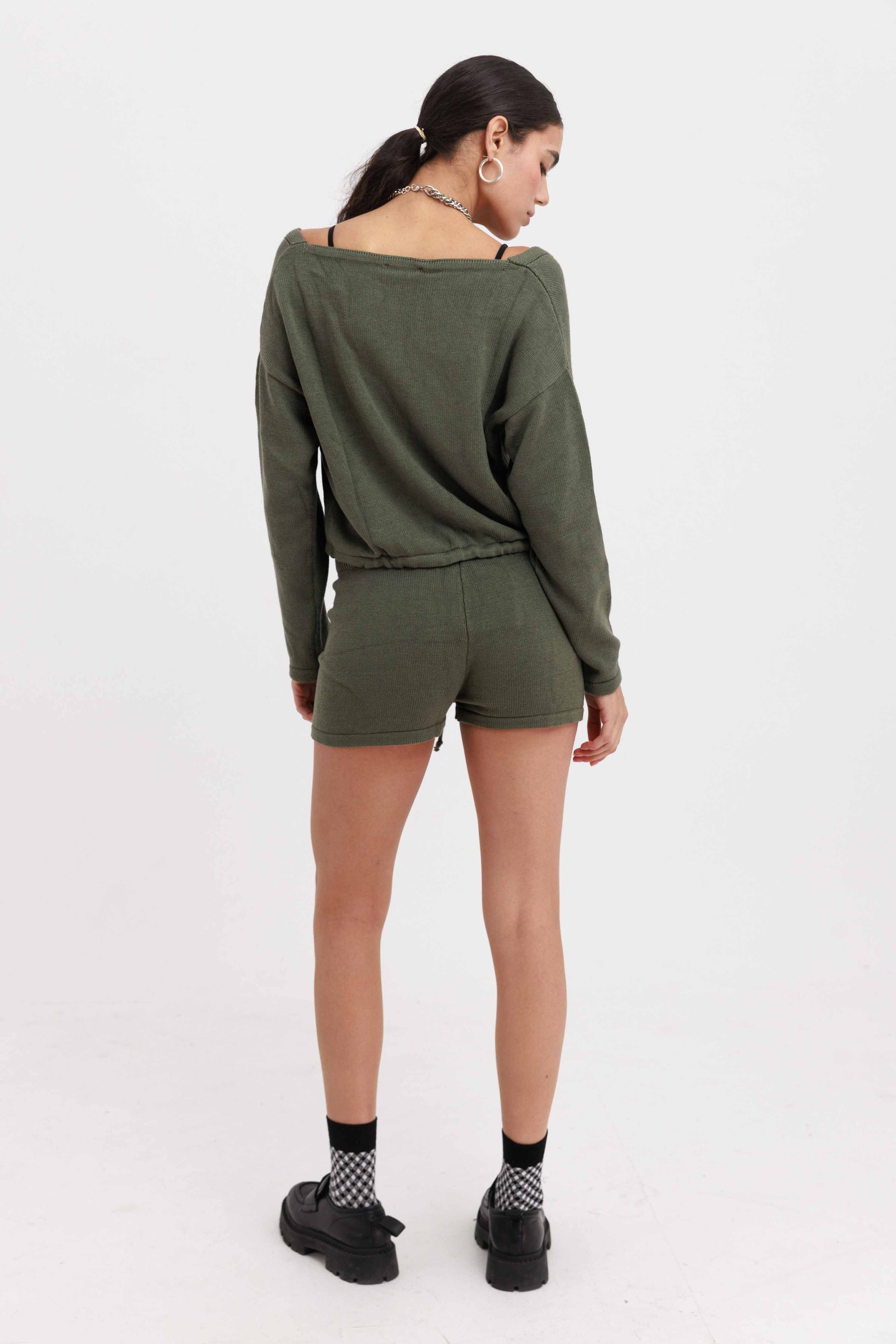 חולצת סריג מכופתרת עם שרוול ארוך ומפתח צוואר וי