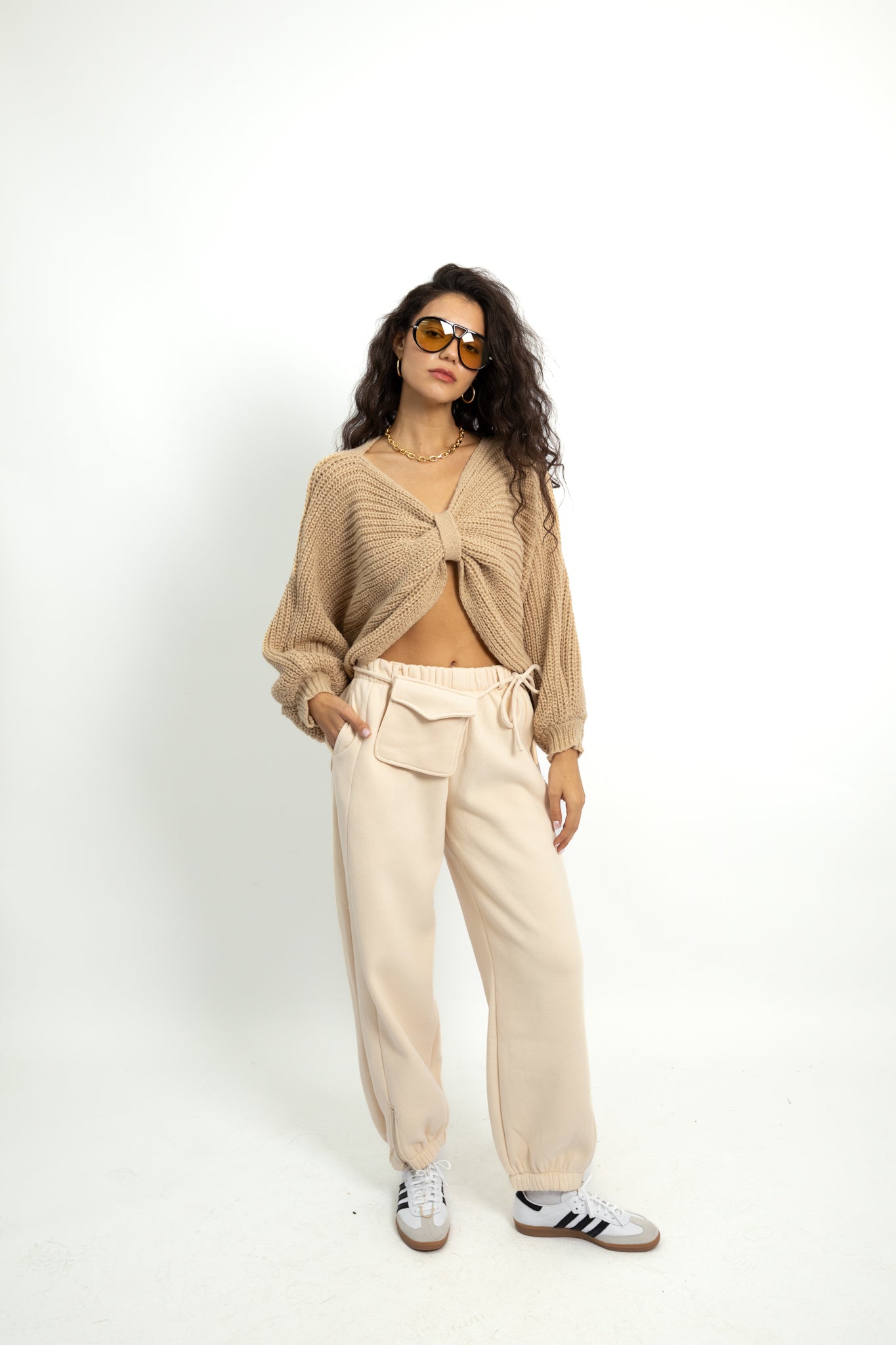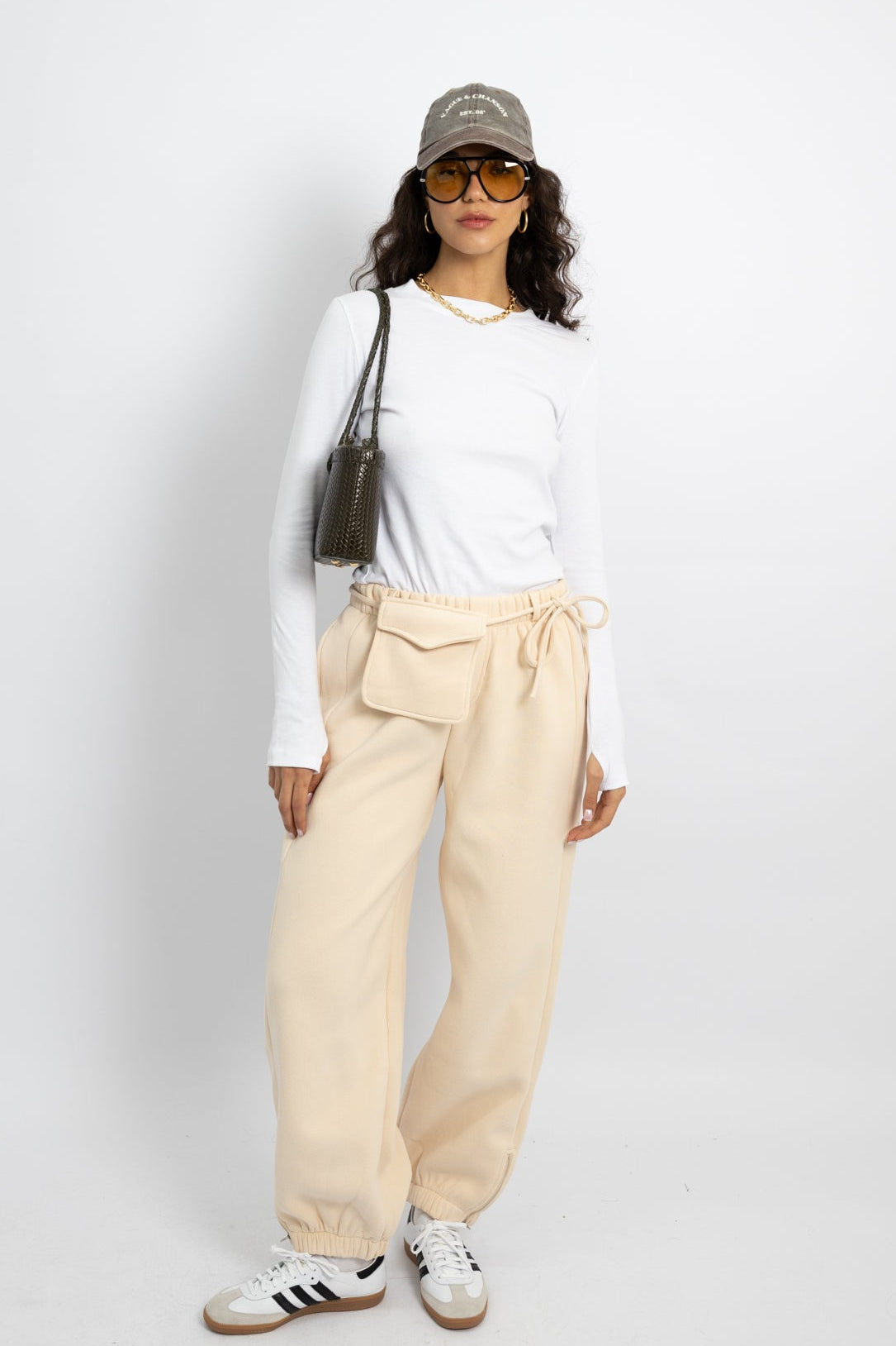 מכנסי טרנינג עם חגורת כיס - חמאה