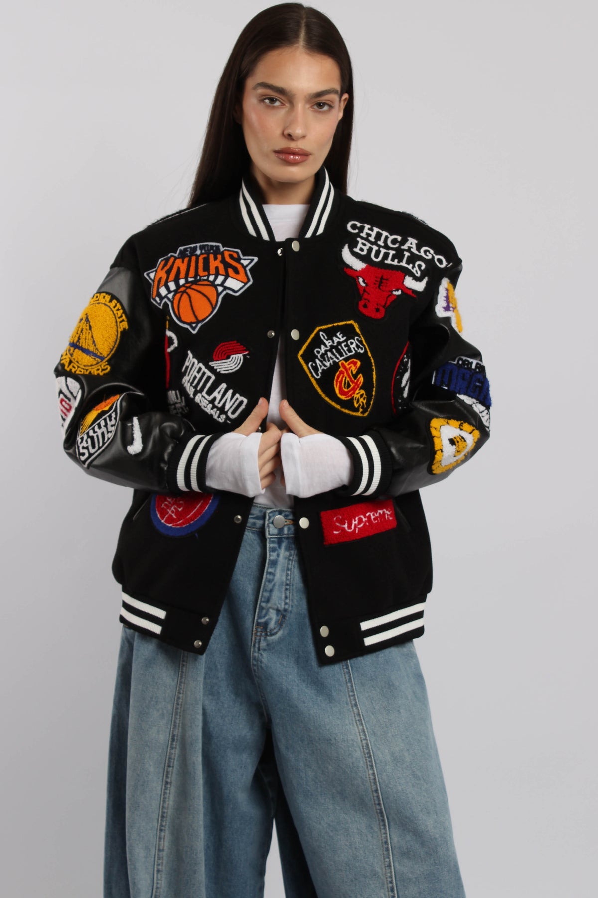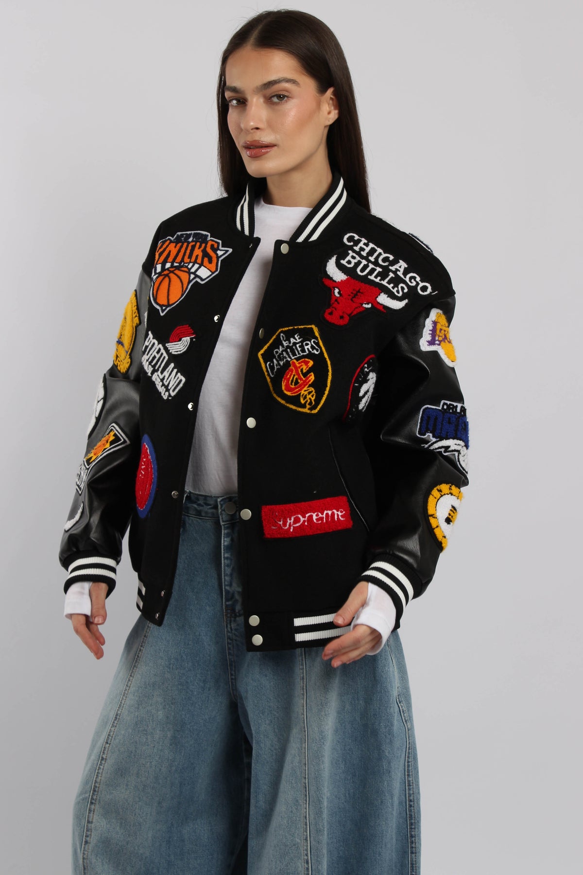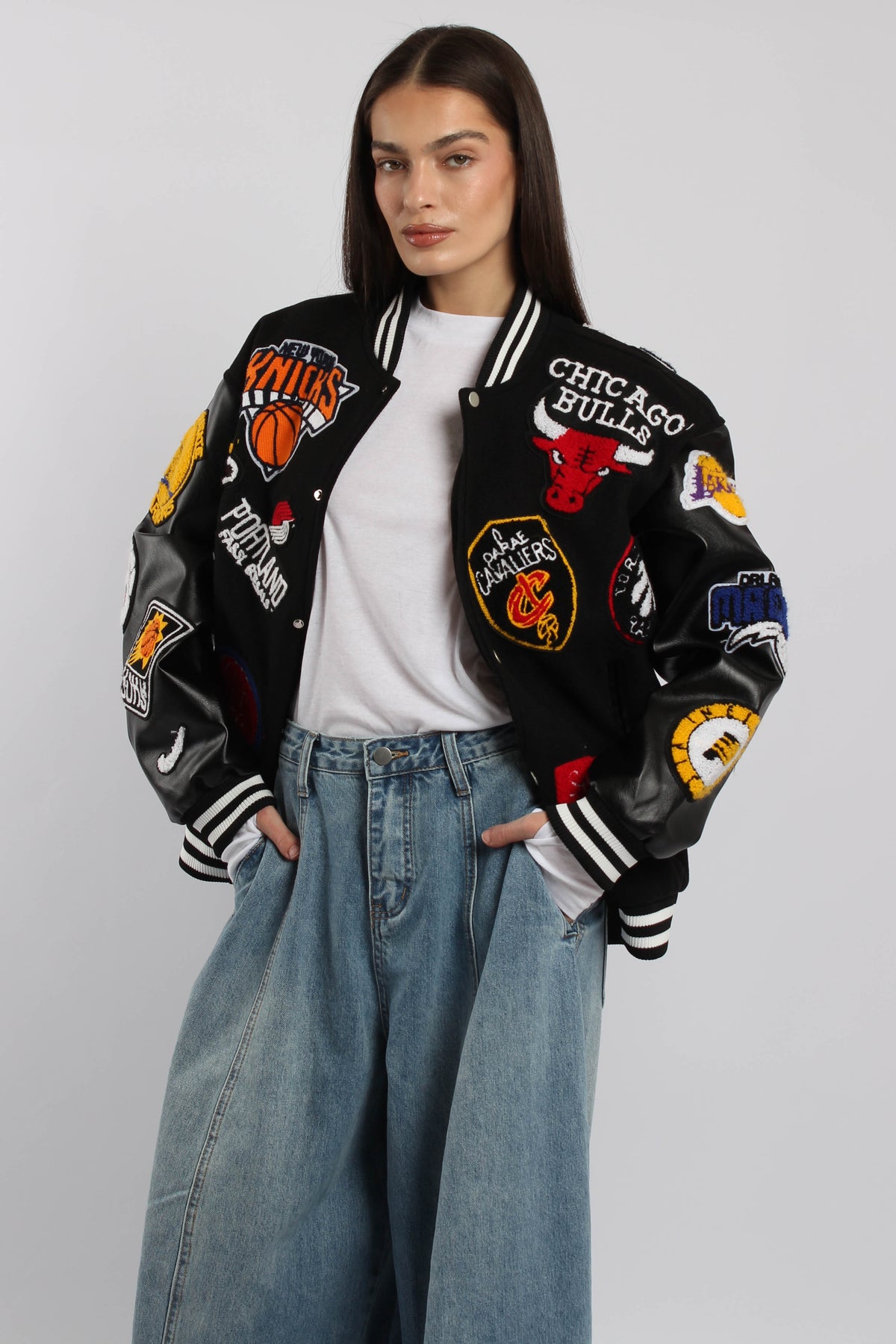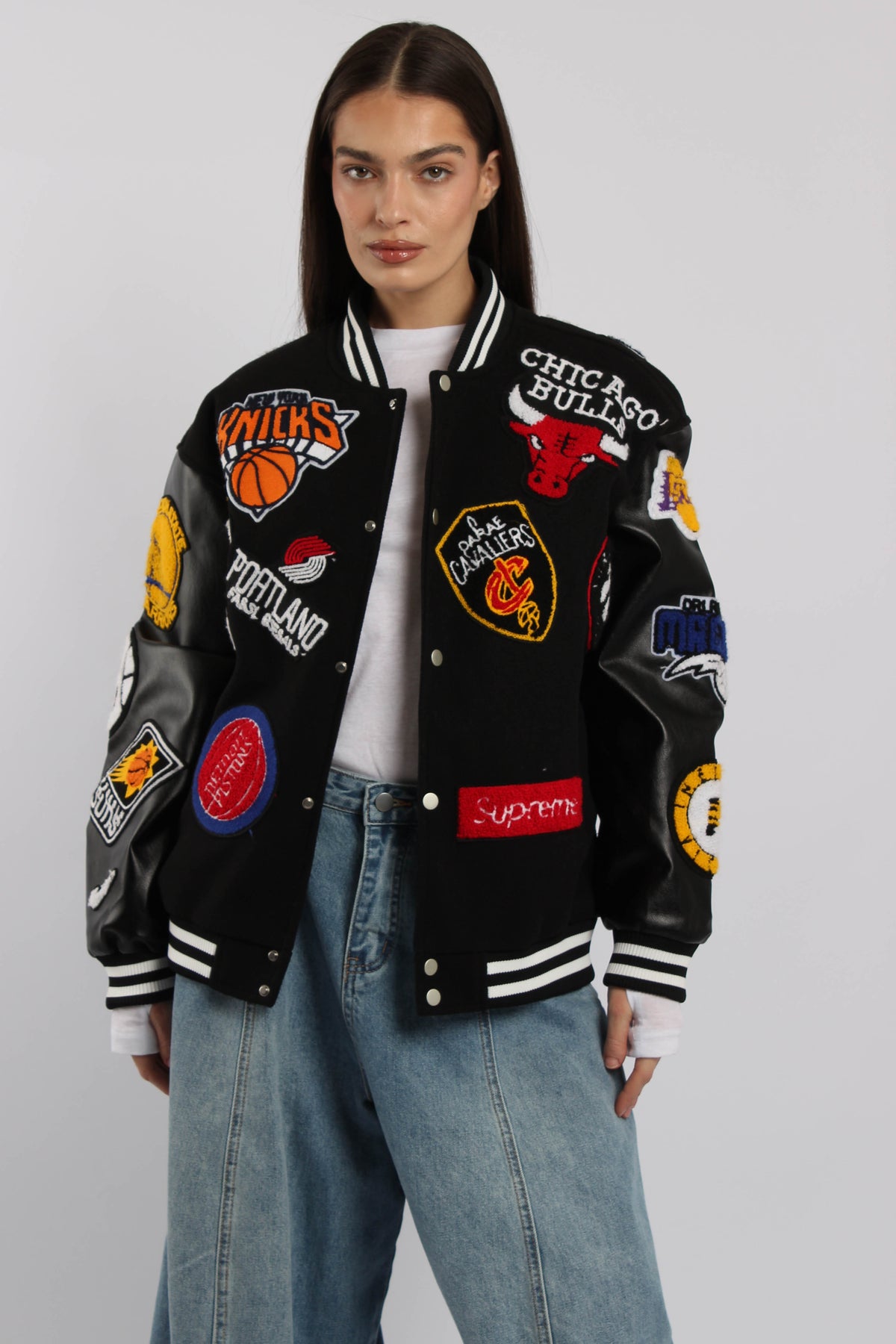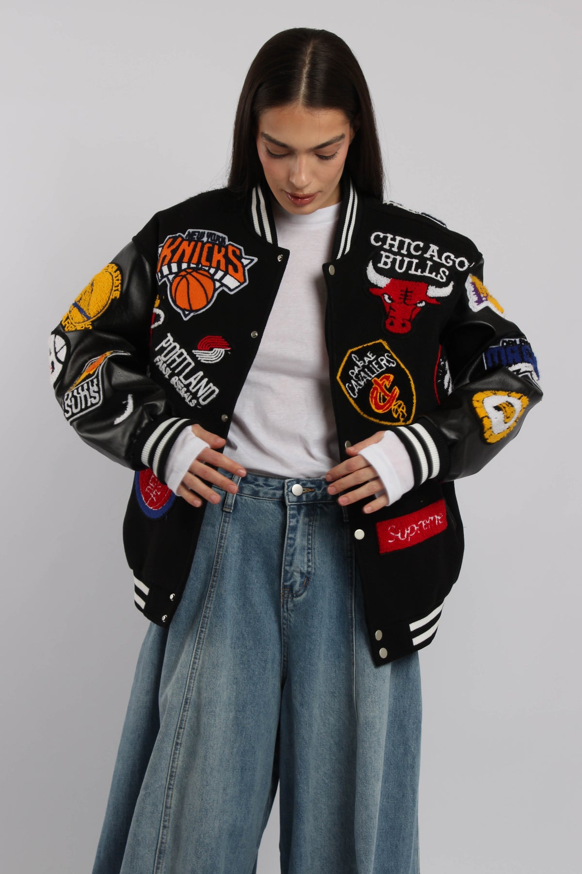 ג׳קט אבדיה בגזרת בומבר עם פאצ׳ים רקומים בסגנון וינטג׳, משלב נוכחות חזקה עם טאץ׳ אורבני ומשדר לוק אופנתי ובולט.