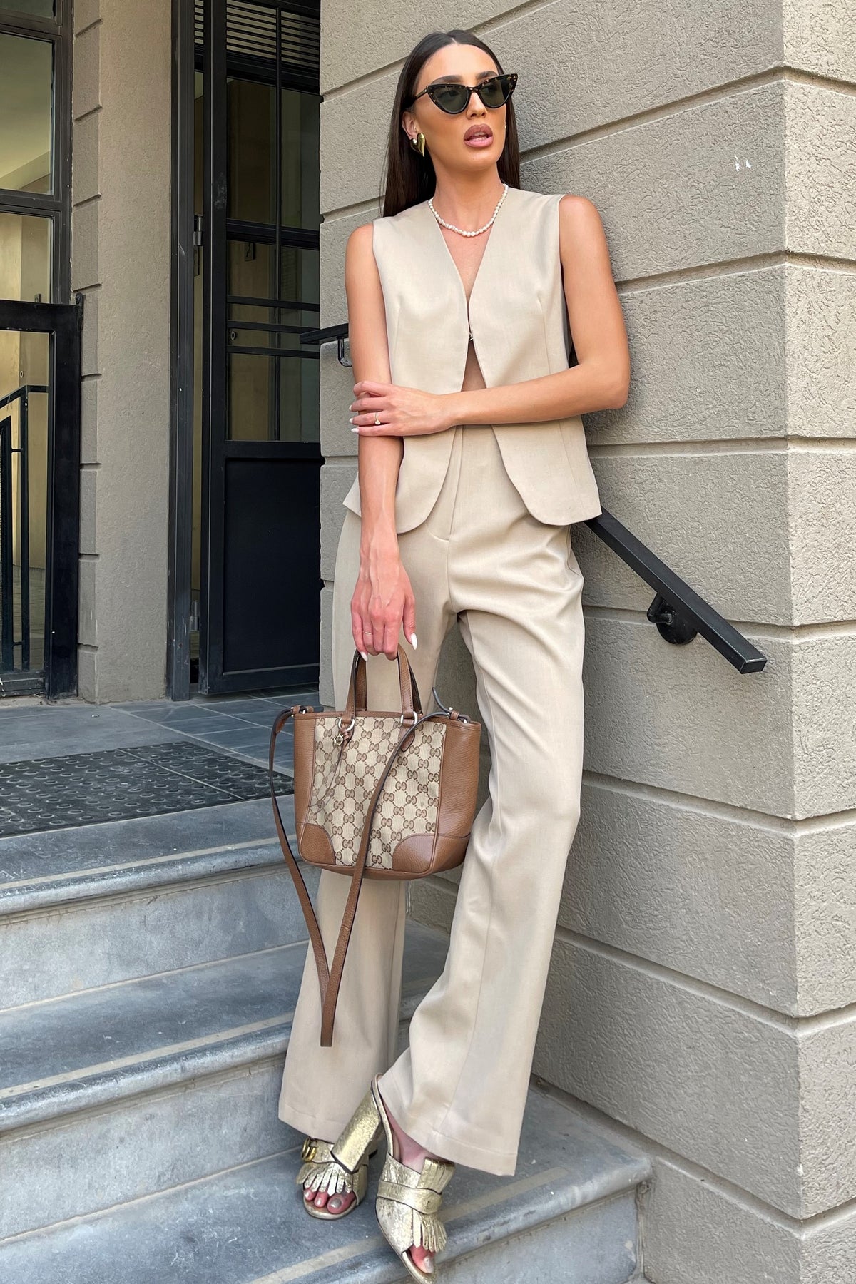 חליפת וסט חלק אלגנטי ומהפנט עם סגירת קרס וגינס