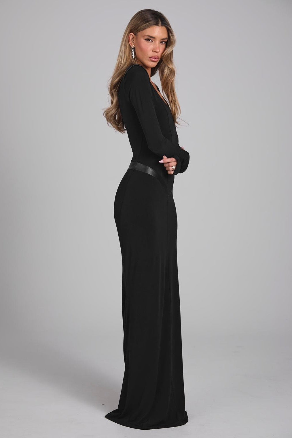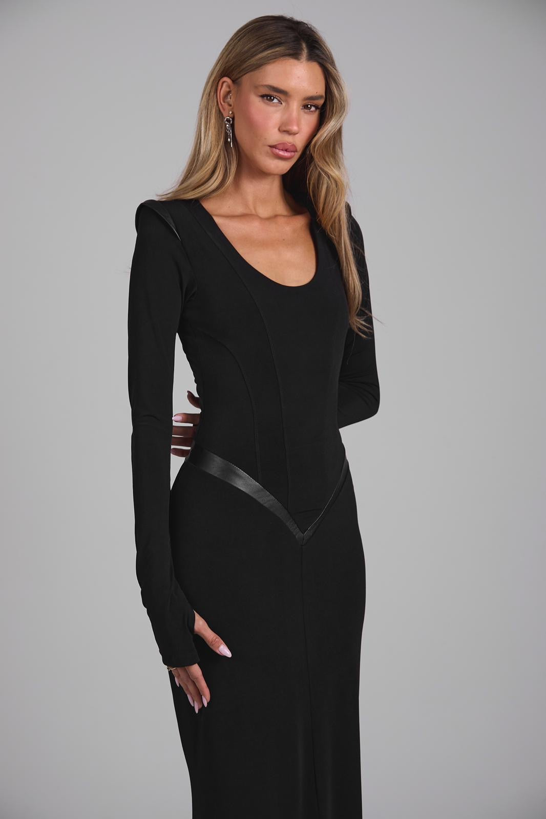שמלת מקסי שחורה צנוע